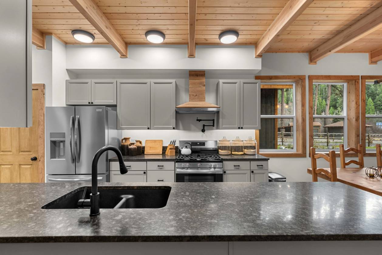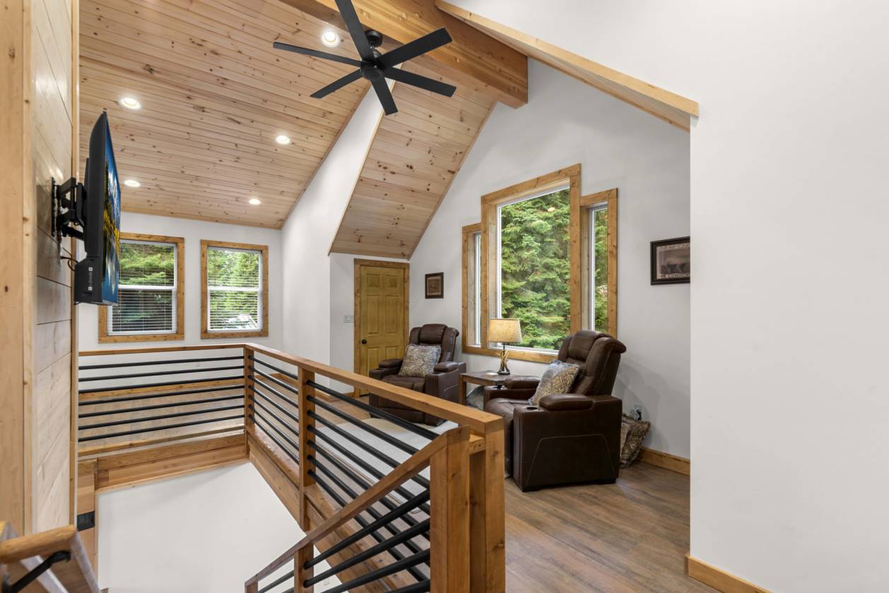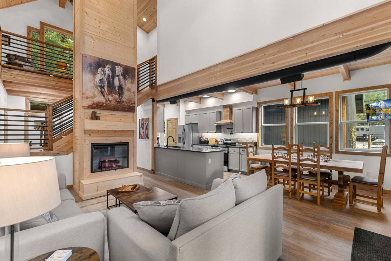 Furnished Mountain modern retreat offers a perfect blend of rustic charm & contemporary luxury. Set on 1.86 private acres w/access to trails & snowmobile routes perfect for recreation. The home boasts 3,294 square feet, 3 bedrooms, 2.5 baths, great room, wood burning fireplace & bonus loft area plus a detached 2-car garage w/office space. A cottage with 3/4 bath & laundry for extra guests. Amenities include wine fridge, stable & tack room, fencing for livestock, wired generator, auto sprinklers, Timber framed carport for extra car/tractor cover. Enjoy the outdoors & a covered patio, TV & seating, offering an inviting place to unwind in & enjoy all 4 seasons. Sold turnkey including snow blower. Minutes to Lake Wenatchee & Plain.