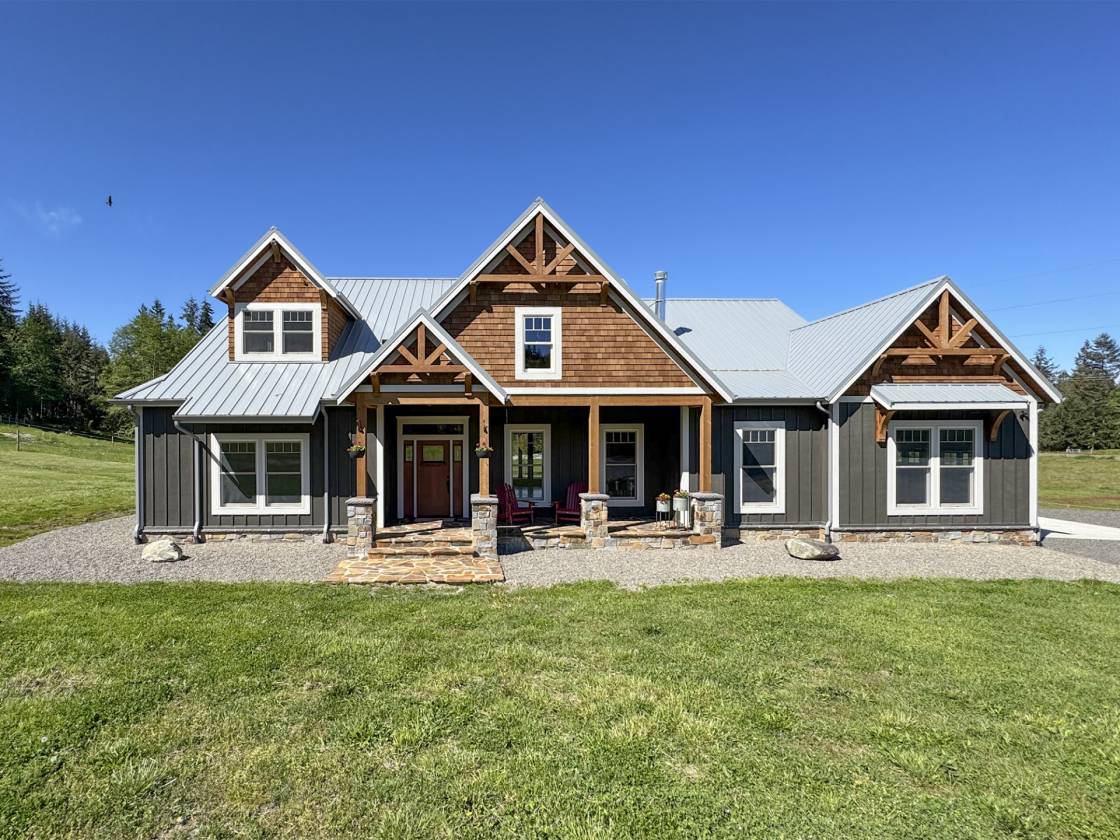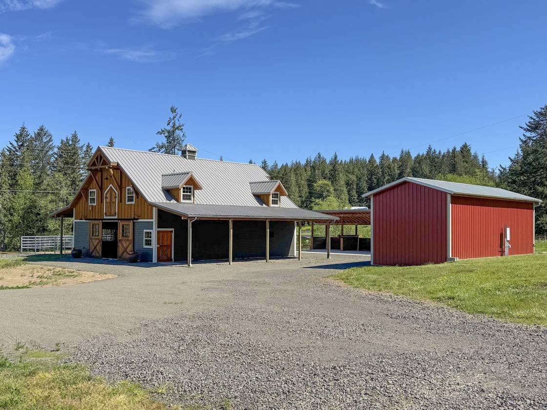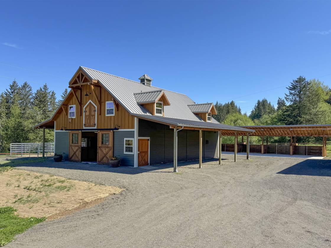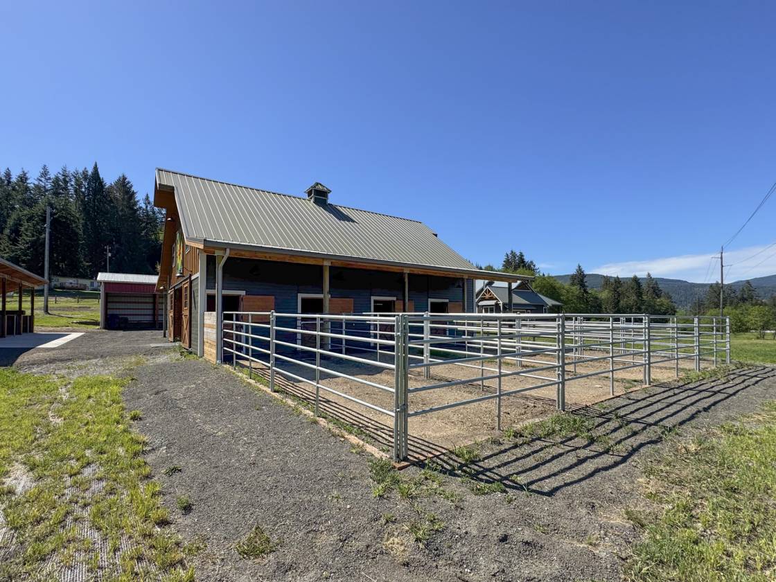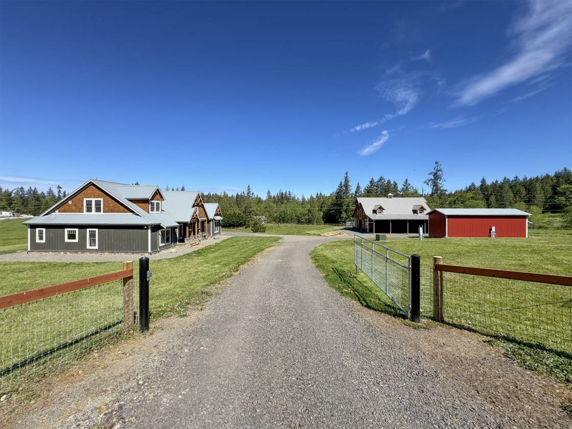 An Equestrian Paradise in the Heart of the Valley: Discover the perfect blend of luxury living and equestrian excellence on this stunning 13+ acre estate just 10 minutes from Sequim. Designed with horse enthusiasts in mind, this premier property offers everything needed for a comfortable and functional equestrian lifestyle. At the heart of the estate lies a custom 48'x36' barn, thoughtfully designed for both horse and handler. It features four spacious stalls, each with individual gravel runs for easy maintenance and horse comfort. A tack room, wash stall, and dedicated hay storage provide essential amenities, while cross-fenced pastures with secure fencing ensure safety and space for grazing and turnout. A built-in composting system supports sustainable manure management, making the property as environmentally responsible as it is beautiful. The gently rolling land offers breathtaking valley views and direct access to nearby horse trails, giving you and your horses room to roam and explore. Functional outbuildings and a peaceful location on a quiet country road enhance the property's utility and charm. Complementing the equestrian facilities is a newly constructed Northwest Craftsman-style home, offering 4 bedrooms, 3.5 baths, and 2,580 sq. ft. of refined living space. Designed with custom details throughout—including vaulted ceilings, rich fir flooring and trim, a Montana stone fireplace, and a gourmet kitchen with maple cabinetry and induction cooktop—the home is a tranquil retreat after a day in the barn or saddle. The primary suite features a luxurious spa-style bath, and outdoor living spaces include a covered porch and deck perfect for taking in panoramic views of your private horse haven. Equipped with energy-efficient heat pumps and windows, this estate brings together rustic elegance, sustainability, and equestrian functionality in one extraordinary package.