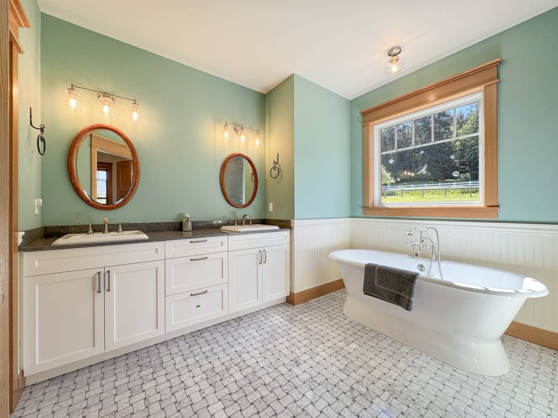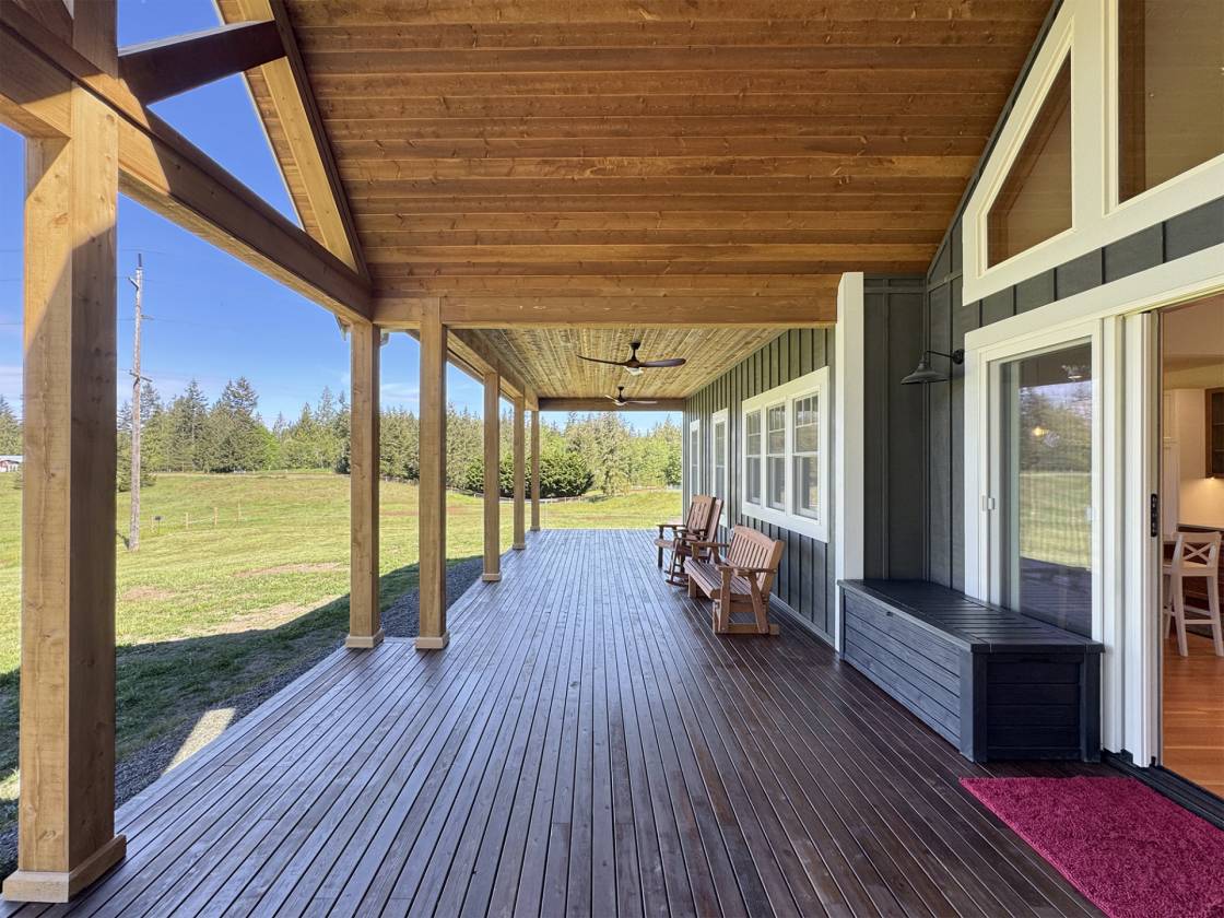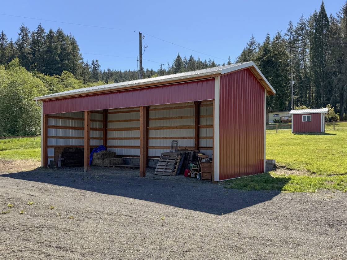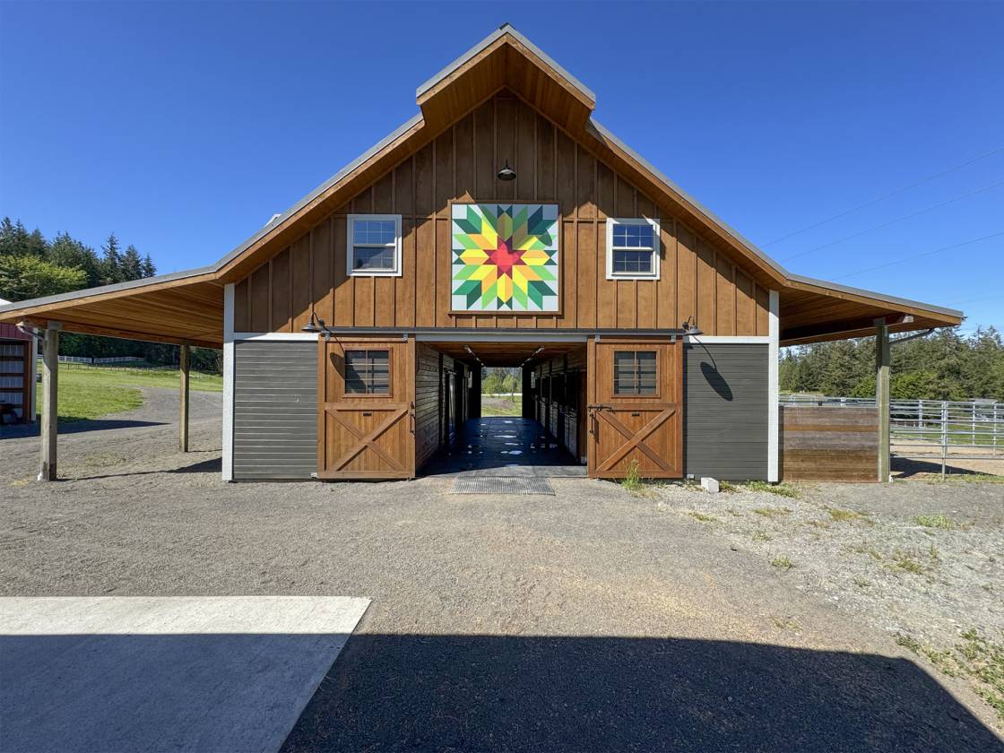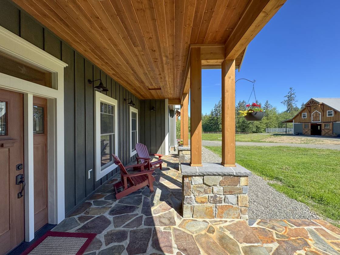 An Equestrian Paradise in the Heart of the Valley: Discover the perfect blend of luxury living and equestrian excellence on this stunning 13+ acre estate just 10 minutes from Sequim. Designed with horse enthusiasts in mind, this premier property offers everything needed for a comfortable and functional equestrian lifestyle. At the heart of the estate lies a custom 48'x36' barn, thoughtfully designed for both horse and handler. It features four spacious stalls, each with individual gravel runs for easy maintenance and horse comfort. A tack room, wash stall, and dedicated hay storage provide essential amenities, while cross-fenced pastures with secure fencing ensure safety and space for grazing and turnout. A built-in composting system supports sustainable manure management, making the property as environmentally responsible as it is beautiful. The gently rolling land offers breathtaking valley views and direct access to nearby horse trails, giving you and your horses room to roam and explore. Functional outbuildings and a peaceful location on a quiet country road enhance the property's utility and charm. Complementing the equestrian facilities is a newly constructed Northwest Craftsman-style home, offering 4 bedrooms, 3.5 baths, and 2,580 sq. ft. of refined living space. Designed with custom details throughout—including vaulted ceilings, rich fir flooring and trim, a Montana stone fireplace, and a gourmet kitchen with maple cabinetry and induction cooktop—the home is a tranquil retreat after a day in the barn or saddle. The primary suite features a luxurious spa-style bath, and outdoor living spaces include a covered porch and deck perfect for taking in panoramic views of your private horse haven. Equipped with energy-efficient heat pumps and windows, this estate brings together rustic elegance, sustainability, and equestrian functionality in one extraordinary package.