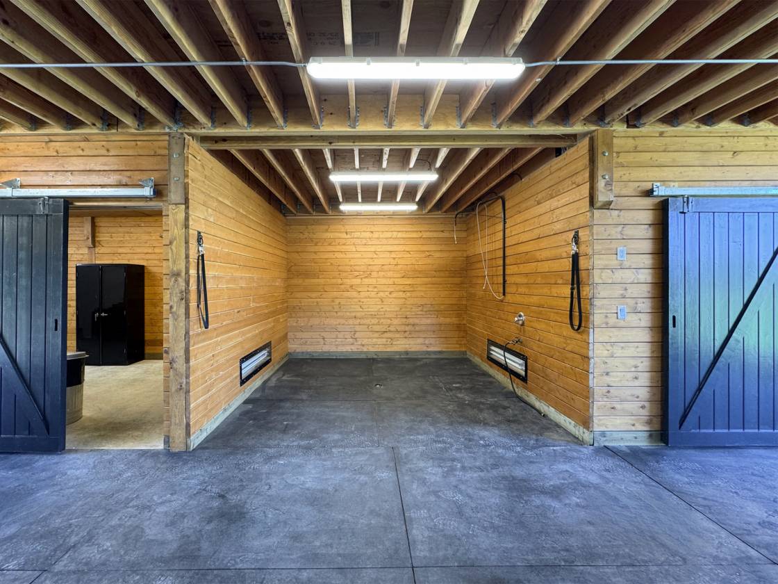 - Stall mats (¾ inch) throughout for comfort