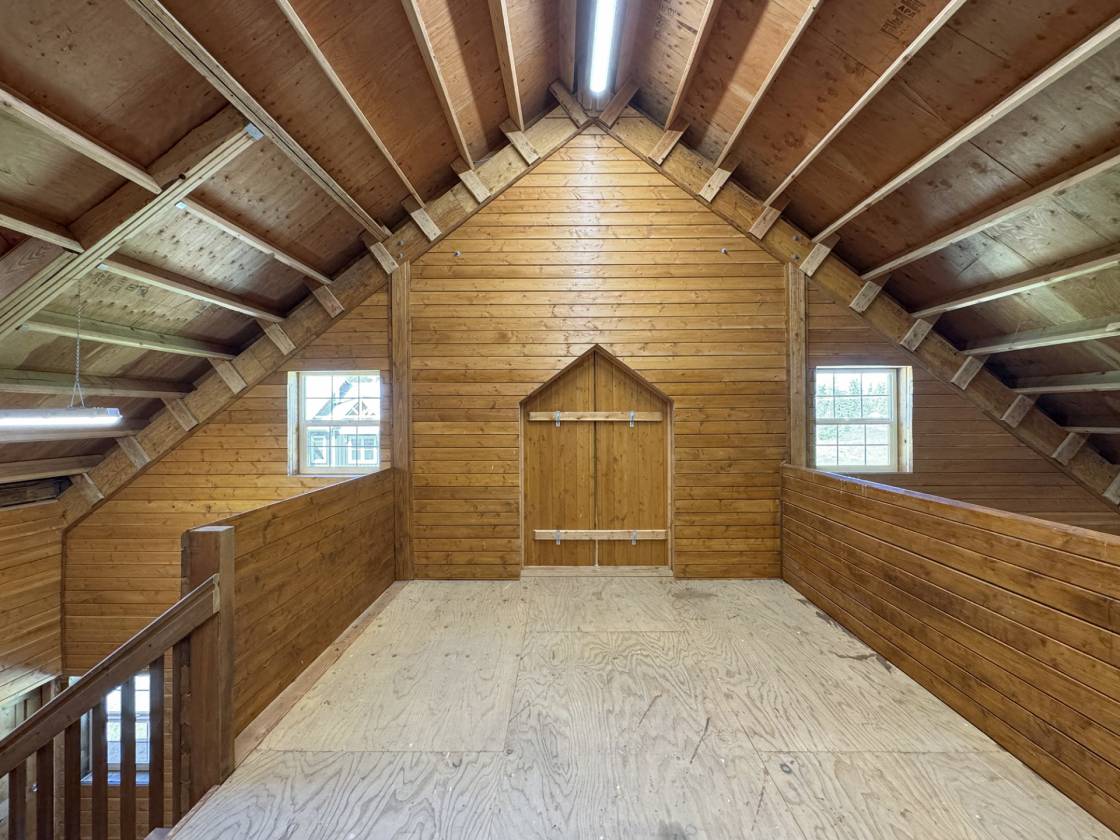 - Loft Storage: 2/3 loft with large access door and high load capacity floor for hay storage