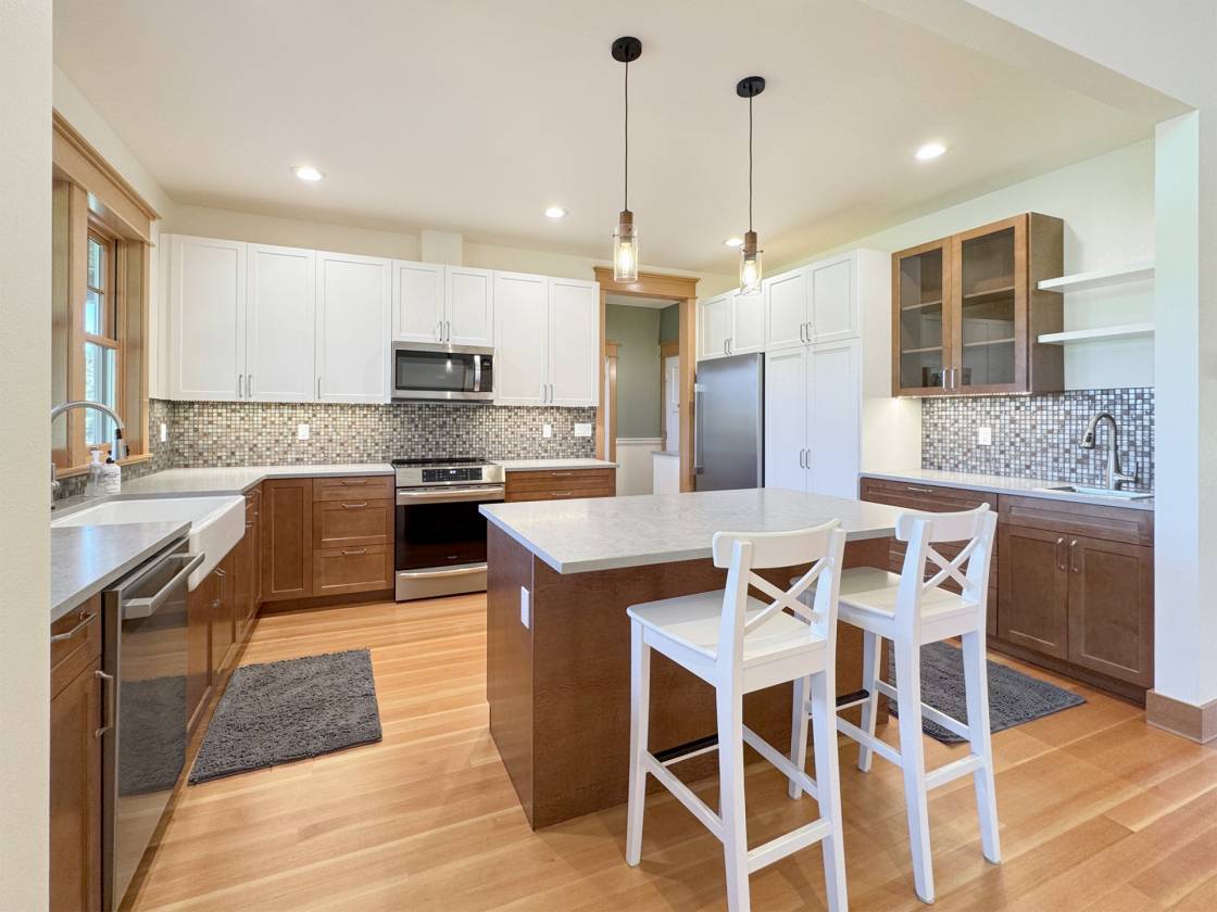 - Custom Maple Cabinetry with soft-close drawers and roll-out shelving