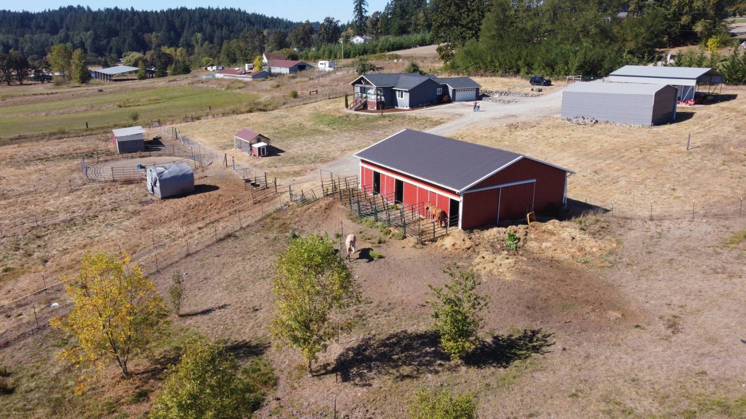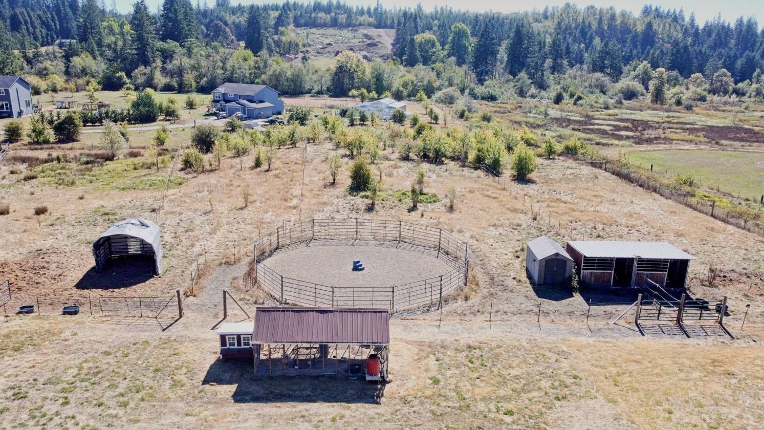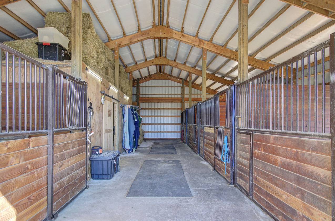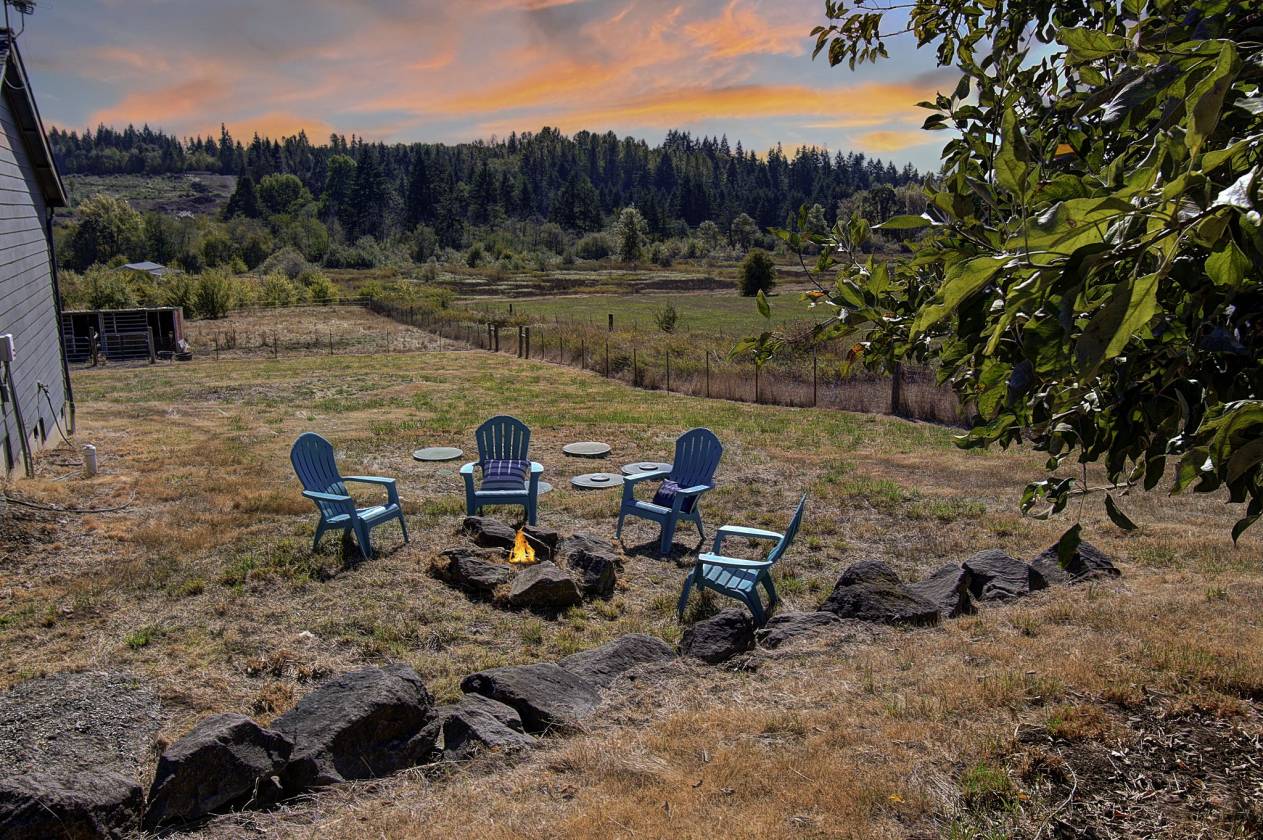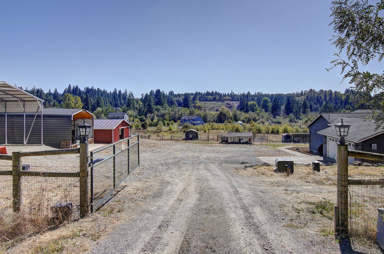 Saddle up and get ready to fall in love with this 5-acre horse property where country living meets comfort and convenience! For the horses, everything is ready to go: multiple pastures with shelters, a 36x48 barn with hay loft plumbed for water and electricity, 7 stalls (5 inside, 2 in shed row), a 12x24 insulated tack room and a round pen. French drains throughout the property keep things dry by channeling water to a seasonal creek, while the fully fenced perimeter includes an invisible dog fence to keep pups safe too. Practical perks abound—RV hookup with 50-amp breaker, septic, water and parking; multiple carports; a storage shed; and a large chicken coop and run. To top it off, you’ll enjoy over 60 wild apple trees with 3 varieties for a sweet fall harvest, for you & your horses! Location is unbeatable: ride your horse directly to Battle Ground Lake trails, or head to the next door arena that allows haul-ins. Whether you’re entertaining on the porch, tending your animals, or hitting the trails, this property blends town convenience with true country freedom.