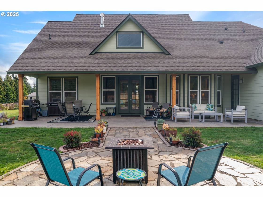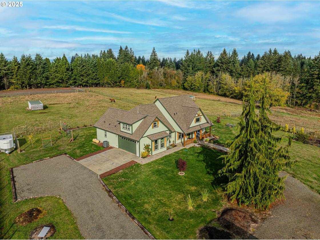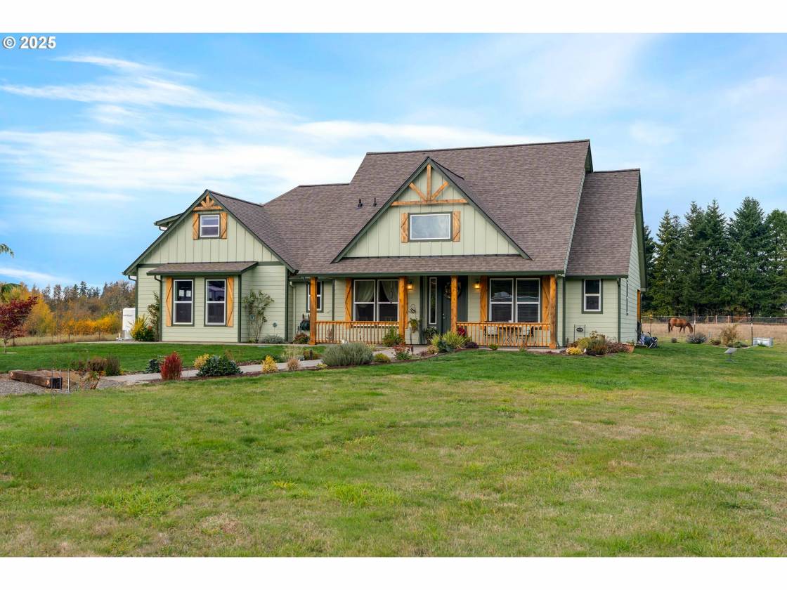 Discover this stunning 2023-built Craftsman-style equestrian estate on 5 private acres in beautiful La Center, WA. Blending timeless farmhouse charm with modern luxury, this 3-bedroom, 2.5-bath home offers open-concept living, exceptional functionality, and income-producing potential. The inviting covered porch opens to a spacious main floor featuring all 3 bedrooms, including a versatile front room ideal for an office or guest suite, plus a walk-in flex room perfect for storage or hobbies. The gourmet kitchen impresses with stainless steel appliances, a large island, farm sink, tiled backsplash, and abundant cabinetry that flows into the dining area and breakfast nook. The living room stuns with 15-foot ceilings, a floor-to-ceiling stone fireplace, and custom built-ins, while double doors lead to a covered patio and cozy firepit area. The primary suite features cathedral ceilings, a walk-in closet, and a spa-style bath with soaking tub, dual vanities, and tiled shower. Upstairs, a large bonus loft with wet bar and half bath provides flexible space for a media room, gym, or office. Equestrian amenities include a 36’x36’ barn with 3 stalls (one oversize for mare, foal, or stallion), two 18’x24’ turnout paddocks, one 30’x30’ paddock, tack room, storage, and a 90’x145’ outdoor sand arena designed for year-round use. Fully fenced pastures are ready for horses or livestock. The wide driveway accommodates RVs, boats, or income-producing ventures like horse boarding, RV parking, or event hosting. An 8’ deer-fenced garden offers raised beds with roses, berries, blueberries, and fruit trees including apple, cherry, and pear. A large shop provides space for equipment, vehicles, or workspace. Perfect for the equestrian enthusiast or anyone seeking the freedom of country living with modern comforts, this property offers endless opportunities—from small boarding operations and clinics to simply enjoying your own private retreat.