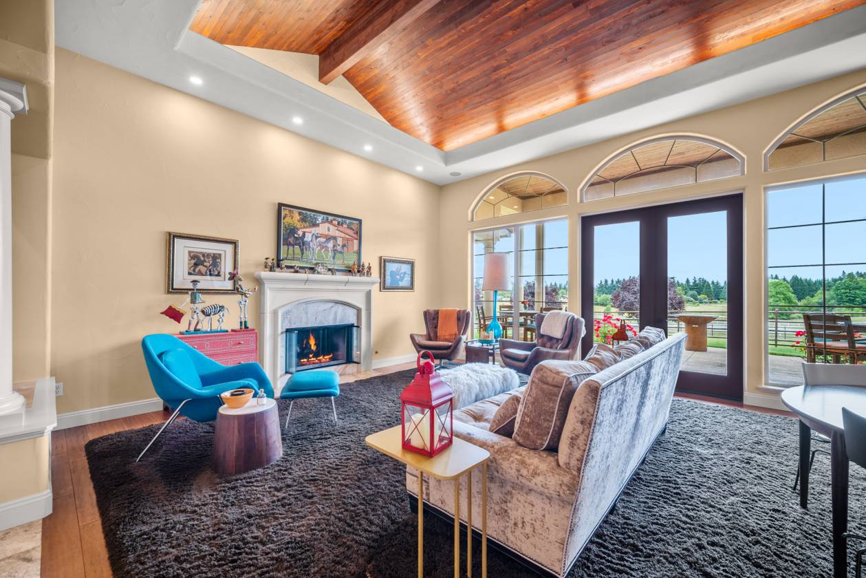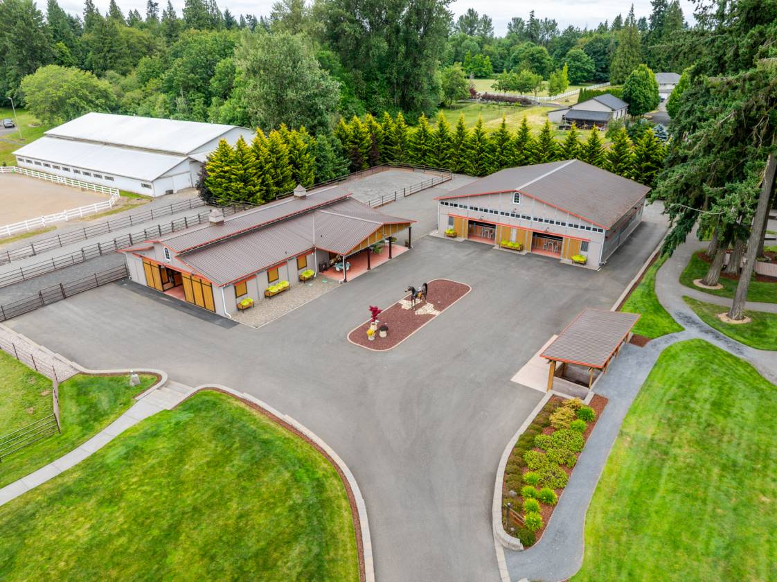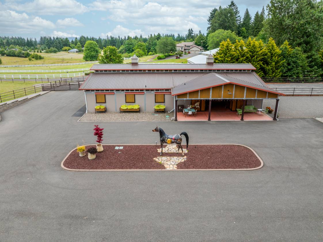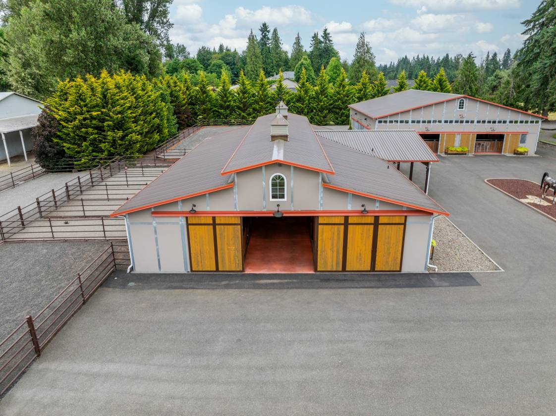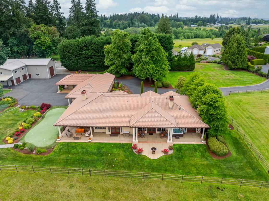 - Welcome to one of the PNW’s most exceptional properties! This luxurious Mediterranean-inspired estate perfectly blends elegance, comfort, and practicality. Set behind a private gate, this sprawling one-level retreat offers true multi-generational living with 6,000 square feet of living space between the main home, attached ADU and detached studio apartment. Main home: 4000 sq ft one-level retreat, 3-bedroom plus flex office/bedroom retreat. ADU: Attached 1,100 sq ft w/full kitchen, bath, living, fireplace—ADA compliant. Detached Studio Apartment: 900 sq ft w/ kitchenette & bath. Main home boasts: 1300+ sq ft of covered outdoor living w/ wood ceilings, heaters, and built-in cook center. Chef’s kitchen: Sub-Zero fridge, dual Bosch dishwashers, Dacor ovens, wolf cook top. 3 fireplaces throughout. Primary suite: Gas fireplace, walk-in closet, large bathroom w/ heated floors + 3-car garage. RV outbuilding has a 60-ft deep, reinforced RV bay (fits Prevost) + 2-car garage & workshop with three 50-amp hookups. 1,000-gallon propane tank is connected to automatic emergency generator. Stunning firepit area for cozy nights. Boasts Mt. St. Helens views and an immaculate, boutique equestrian facility with 6-stall barn, indoor arena, Neilson waterers, runs, covered patio, outdoor arena, O2 Compost System, and high-end Mark Bolender trail course set on a picturesque, five-acre parcel approved for agricultural tax exemptions. This estate is a rare opportunity to live a resort-style lifestyle while enjoying Washington’s no-income-tax benefit. 10 minutes to shopping + restaurants and 20 min to Portland International Airport. Perfect for frequent travelers, equestrian enthusiasts, or anyone seeking sanctuary with easy access to the city life. With multiple living quarters, spectacular settings, top-tier finishes, and a full equestrian facility, it’s the kind of home that checks every box—whether you’re seeking a private family compound, a dual-living setup, or an exceptional estate.