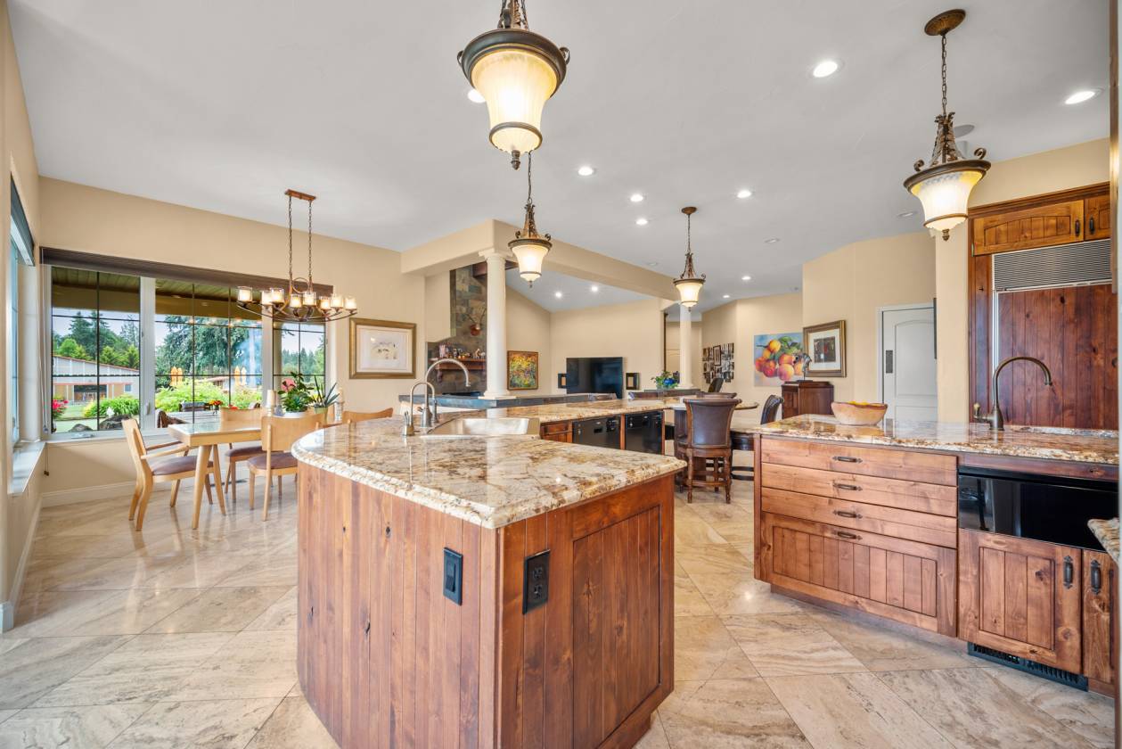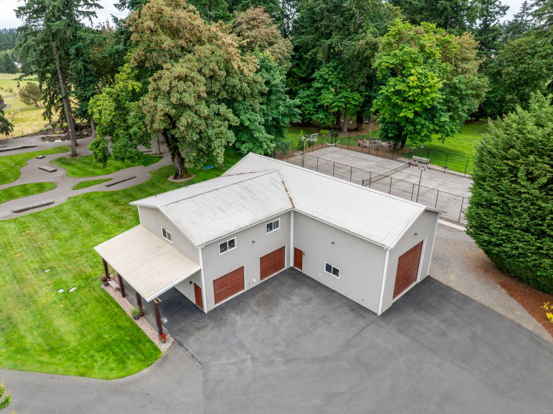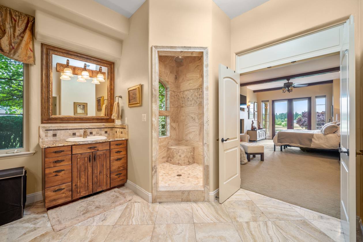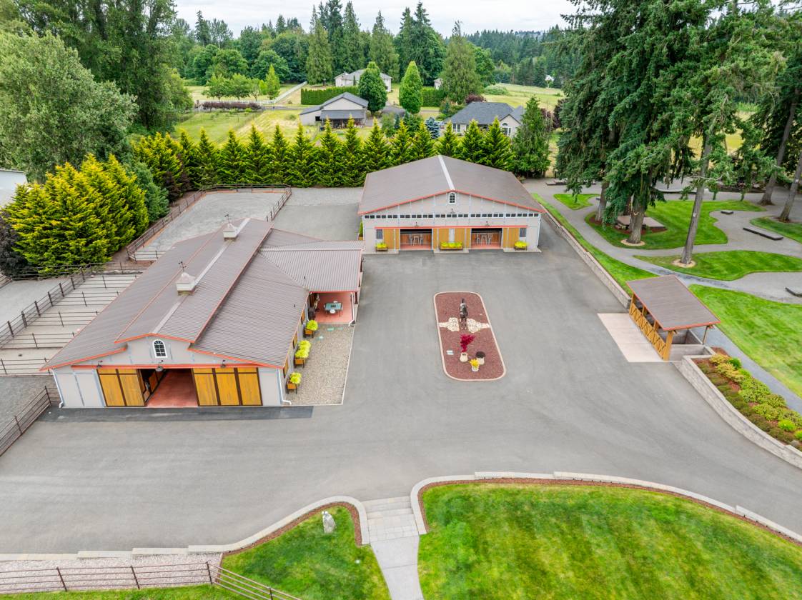 - Welcome to one of the PNW’s most exceptional properties! This luxurious Mediterranean-inspired estate perfectly blends elegance, comfort, and practicality. Set behind a private gate, this sprawling one-level retreat offers true multi-generational living with 6,000 square feet of living space between the main home, attached ADU and detached studio apartment. Main home: 4000 sq ft one-level retreat, 3-bedroom plus flex office/bedroom retreat. ADU: Attached 1,100 sq ft w/full kitchen, bath, living, fireplace—ADA compliant. Detached Studio Apartment: 900 sq ft w/ kitchenette & bath. Main home boasts: 1300+ sq ft of covered outdoor living w/ wood ceilings, heaters, and built-in cook center. Chef’s kitchen: Sub-Zero fridge, dual Bosch dishwashers, Dacor ovens, wolf cook top. 3 fireplaces throughout. Primary suite: Gas fireplace, walk-in closet, large bathroom w/ heated floors + 3-car garage. RV outbuilding has a 60-ft deep, reinforced RV bay (fits Prevost) + 2-car garage & workshop with three 50-amp hookups. 1,000-gallon propane tank is connected to automatic emergency generator. Stunning firepit area for cozy nights. Boasts Mt. St. Helens views and an immaculate, boutique equestrian facility with 6-stall barn, indoor arena, Neilson waterers, runs, covered patio, outdoor arena, O2 Compost System, and high-end Mark Bolender trail course set on a picturesque, five-acre parcel approved for agricultural tax exemptions. This estate is a rare opportunity to live a resort-style lifestyle while enjoying Washington’s no-income-tax benefit. 10 minutes to shopping + restaurants and 20 min to Portland International Airport. Perfect for frequent travelers, equestrian enthusiasts, or anyone seeking sanctuary with easy access to the city life. With multiple living quarters, spectacular settings, top-tier finishes, and a full equestrian facility, it’s the kind of home that checks every box—whether you’re seeking a private family compound, a dual-living setup, or an exceptional estate.