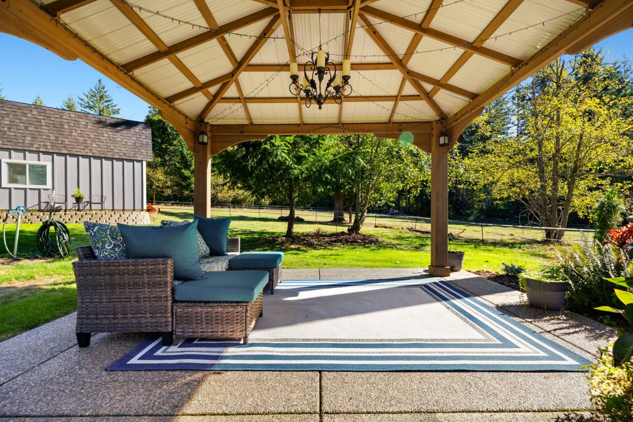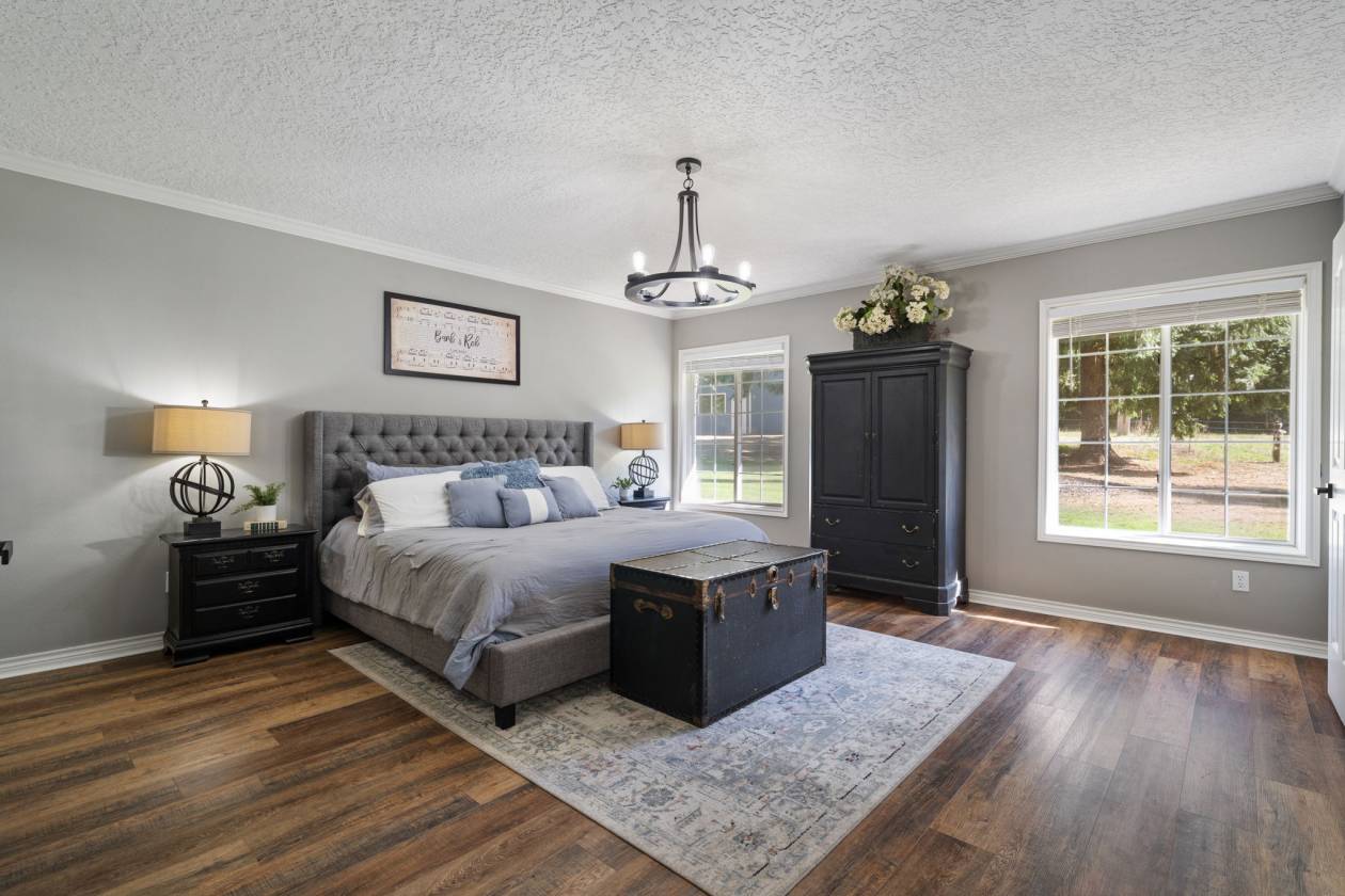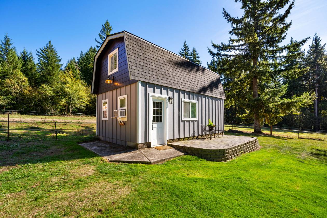 5-Acre 2022 Renovated 2,510 Sqft Ranch Home with a 676 Sqft Detached cottage. Nestled in a private dead-end community with other acreage homes. This home offers modern luxury and rural charm. The main residence features 3 bedrooms, two fully remodeled bathrooms, and an open-concept design the home has a new roof, HVAC system, Paint inside and out, plumbing fixtures, flooring, lighting & beautifully redesigned kitchen. When you enter the home, there is attention to detail that was given to the crown moldings in many area's & doorways. The generous sized vaulted living room & dining room, where you will notice the unique inverted cove ceiling and traditional light fixture. These features are complemented by wood windows with decorative trim, adding to the home’s sophistication. The center piece of the Gourmet kitchen is a 6 x 6 island with Quartz countertop. Surrounding the island are 3-year-old Kitchen Aid Professional Series stainless steel appliances which includes a 5-burner gas cooktop. double oven with convection, Refrigerator, dual zone double door wine storage and ultra quiet dishwasher, large Quartz countertop area and custom solid wood cabinetry. The high ceiling of the large great room which focuses on a floor to ceiling custom brick fireplace alcove with a beautiful wood stove. The double door entry to the primary bedroom is a true sanctuary, complete with direct access to a private covered for shaded relaxation. The completely updated double vanity bathroom with comfortable height toilet and generous frameless shower, will make get your day. The expansive outdoor area is ideal for gatherings or evenings under the stars with the most amazing Sunsets you will see.A detached 1-bedroom guest house with patio could provide rental income. Extra space in the 2,000 sq. ft. metal sided barn w/concrete floors & 220 electrical service, ideal for workshops, storage and Stalls. Just 25 min to PDX & Waterfront. 7 min toresturants and Stores. Seller is a lic.Agent.