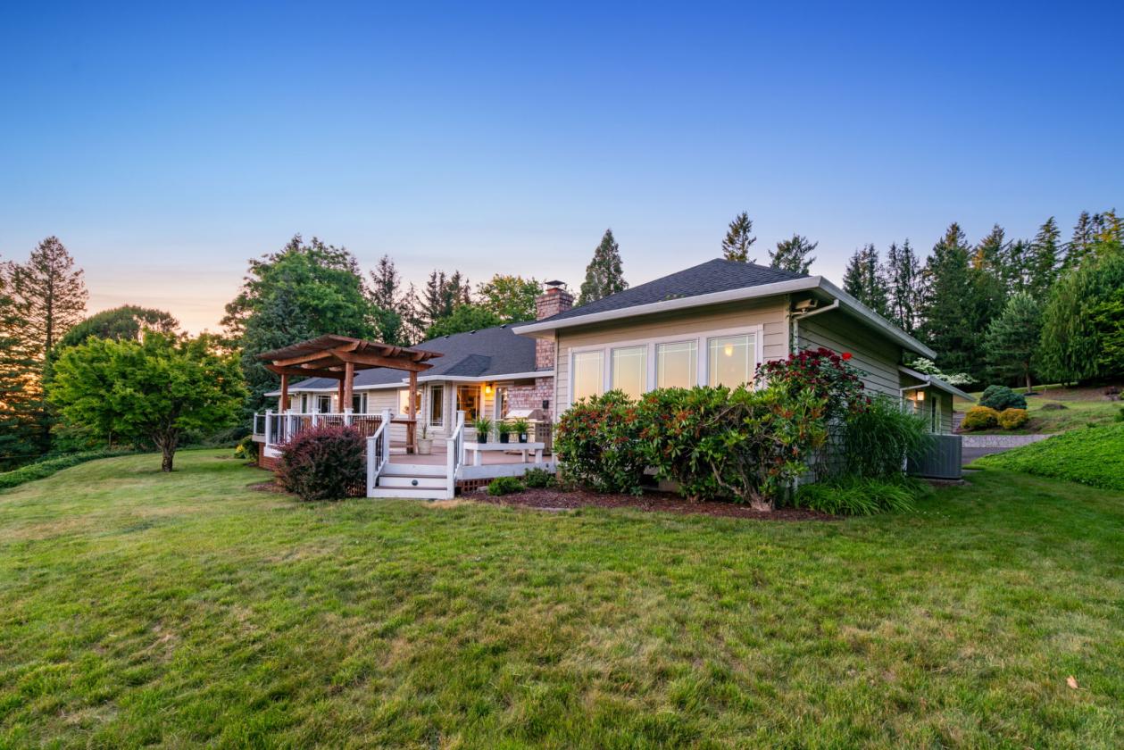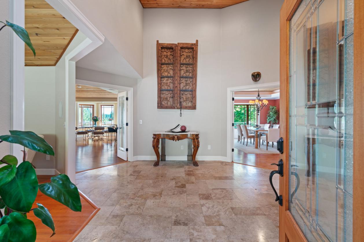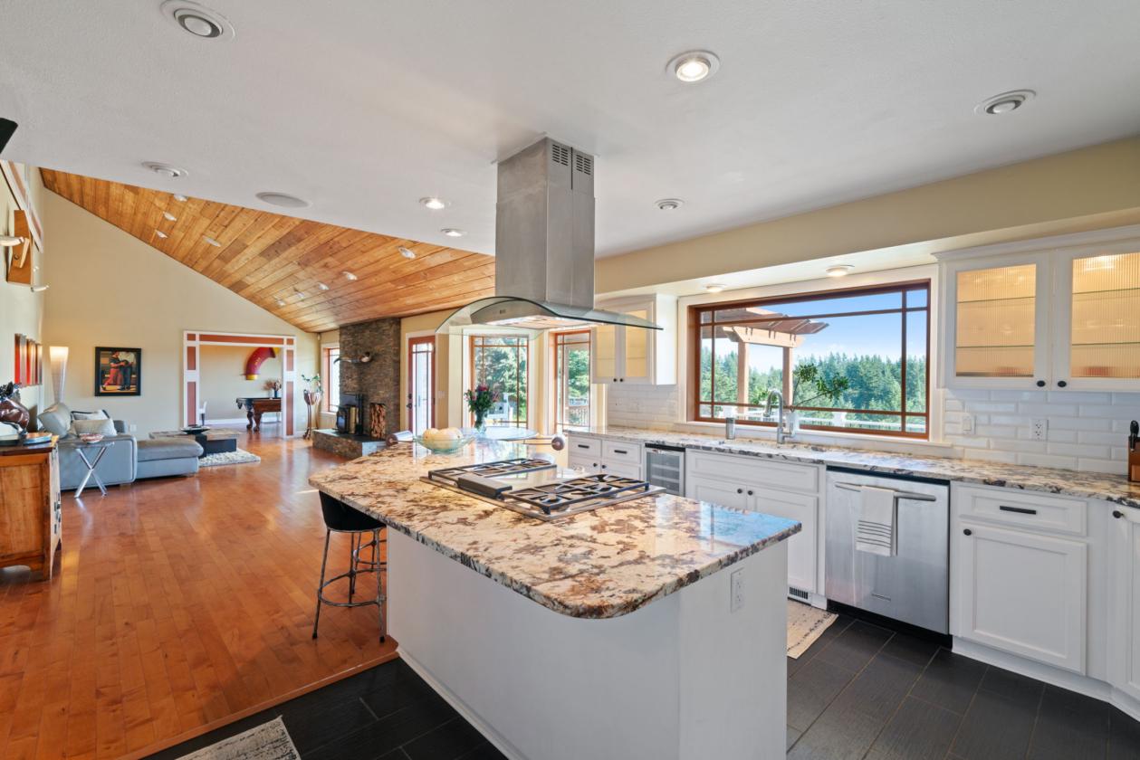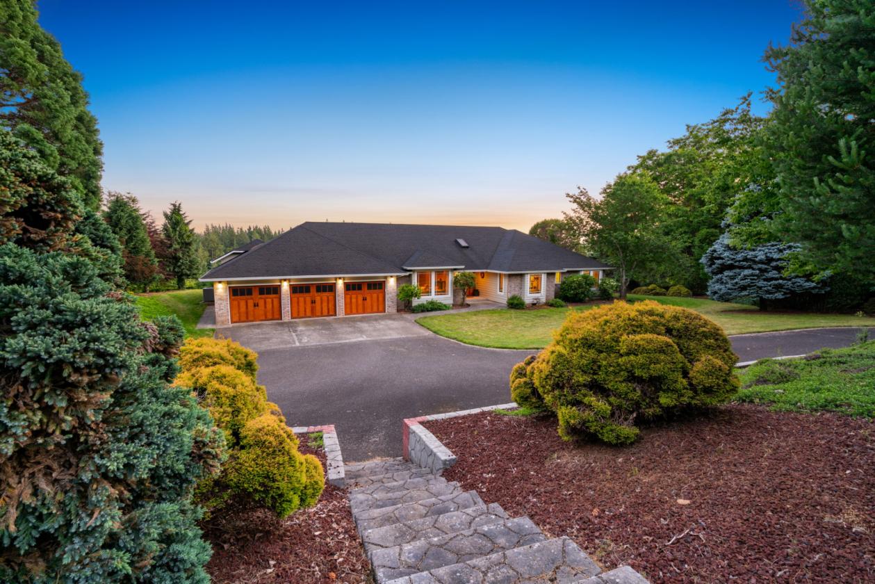 Situated on 10.5± private acres with scenic views and a gated circular driveway, this remodeled 3,596 SQFT single-level home features a modern Northwest design with a gourmet kitchen, granite countertops, high-end appliances, and a large island flowing into a vaulted Great Room with direct access to a ~1000 SQFT deck with LED lighting and speakers. Interior highlights include maple hardwood floors, vaulted cedar ceilings, woodclad windows, a spacious primary suite with dual closets, walk-in shower, jetted tub, and deck access, plus additional bedrooms, office/den, bonus room, and a hidden safe room, along with fiberoptic internet and CCTV. The equestrian facilities include a world-class 75x208 clear-span indoor arena with a sprinkler system, 10 oversized 12x17 warmblood stalls with automatic waterers, a heated wash rack, and a heated tack room with hot/cold water. The property also offers five large fenced pastures with Centaur® fencing, fiberglass-covered shelters, a ~70 round pen, and a multi-bay shop with 220V power, hot water, and ample space for hay, trailers, and equipment, all located just ~30 minutes to PDX and 5 minutes to shopping and dining.