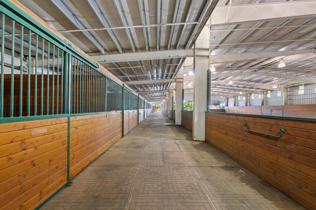 - Five large pastures with Centaur® fencing and covered shelters, plus a