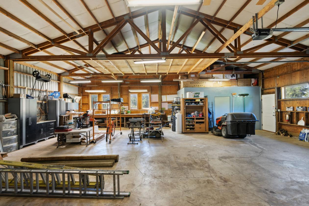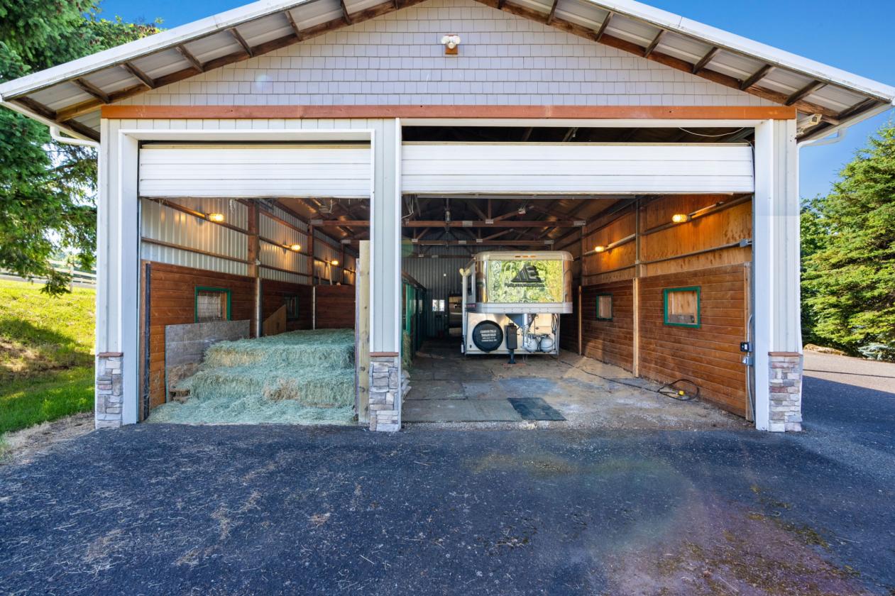 - Multi-bay shop with 220V, hot water, and storage for hay, trailers, and equipment