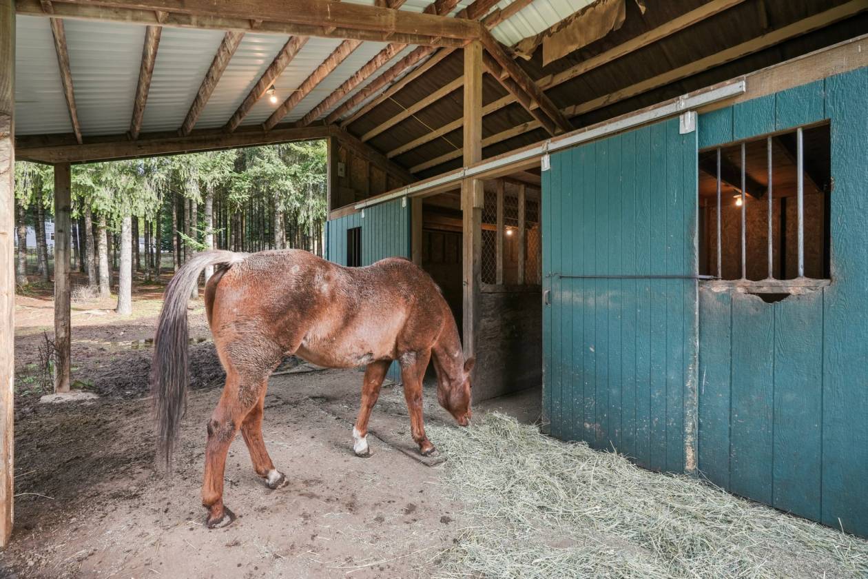 - 2 Stall barn with hay loft and tack room. All fenced acreage with corral. In the neighborhood of a plethora of riding trails.