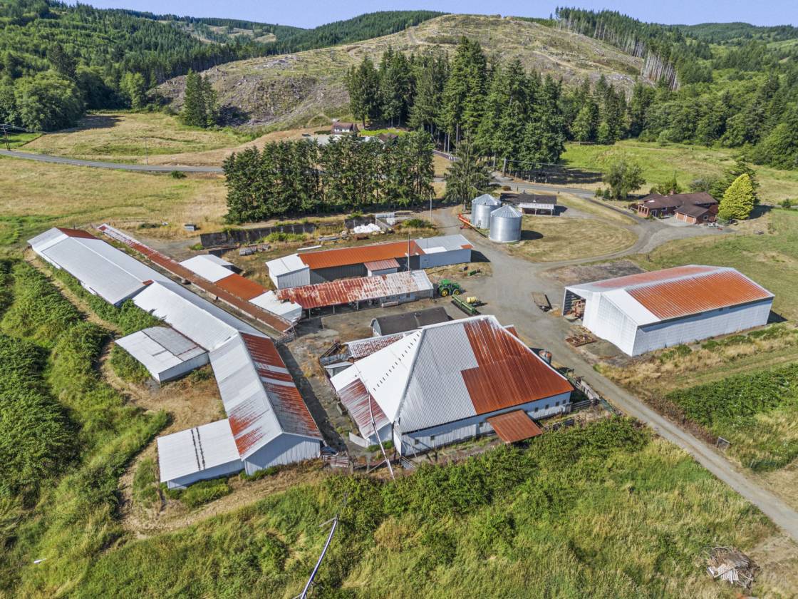This 93-ac farm has 3 parcels, 2 homes, multiple barns, outbuildings, and private access to the Wynoochee River. Originally a dairy farm running several hundred head, these grounds could be converted into an equestrian estate or private facility. There is over 30,000 square feet of barn and pole building space to work with. The original barn was built in 1903 and still in usable condition. Additional barns and farm buildings have been added in the since then. The surrounding ground is mostly flat with well-drained soils. There is plenty of room to add indoor and/or outdoor arenas. Produce your own hay to supply your livestock. Two wells and senior water rights provide ample water for any direction you want to go with the property. There is plenty of room for guests in 3200+ square foot home with a roomy, finished basement and an additional 1200+ square foot secondary home.