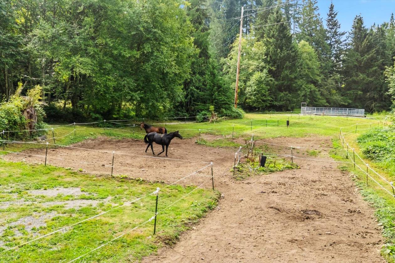 Experience peaceful country living with modern amenities on this 3.5-acre property perfect for horses and hobby farming. The property includes an exercise arena, 2 pastures, multiple workshops with power and water (one EV/RV ready), a run in shelter with hay loft and a fully fenced front yard for your chickens and dogs! The charming home offers updated comforts, including new appliances, mini split for AC/heat, a wood stove, and a separate-entrance basement with ADU potential. Located just minutes from Rattlesnake Lake, downtown North Bend, top-rated Snoqualmie Valley schools, and endless trails, with a short commute to Seattle or Bellevue — this is the best of Northwest living!