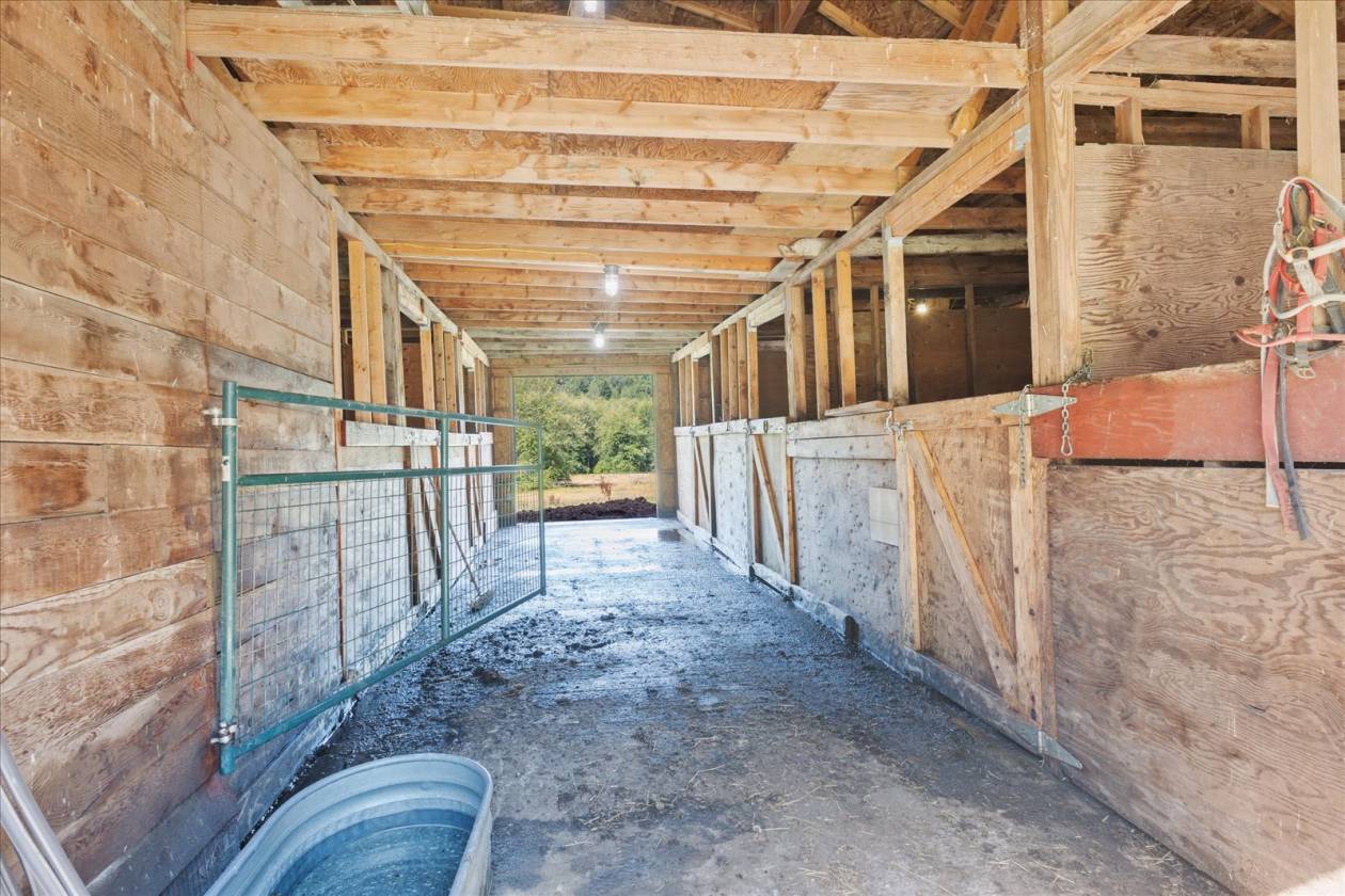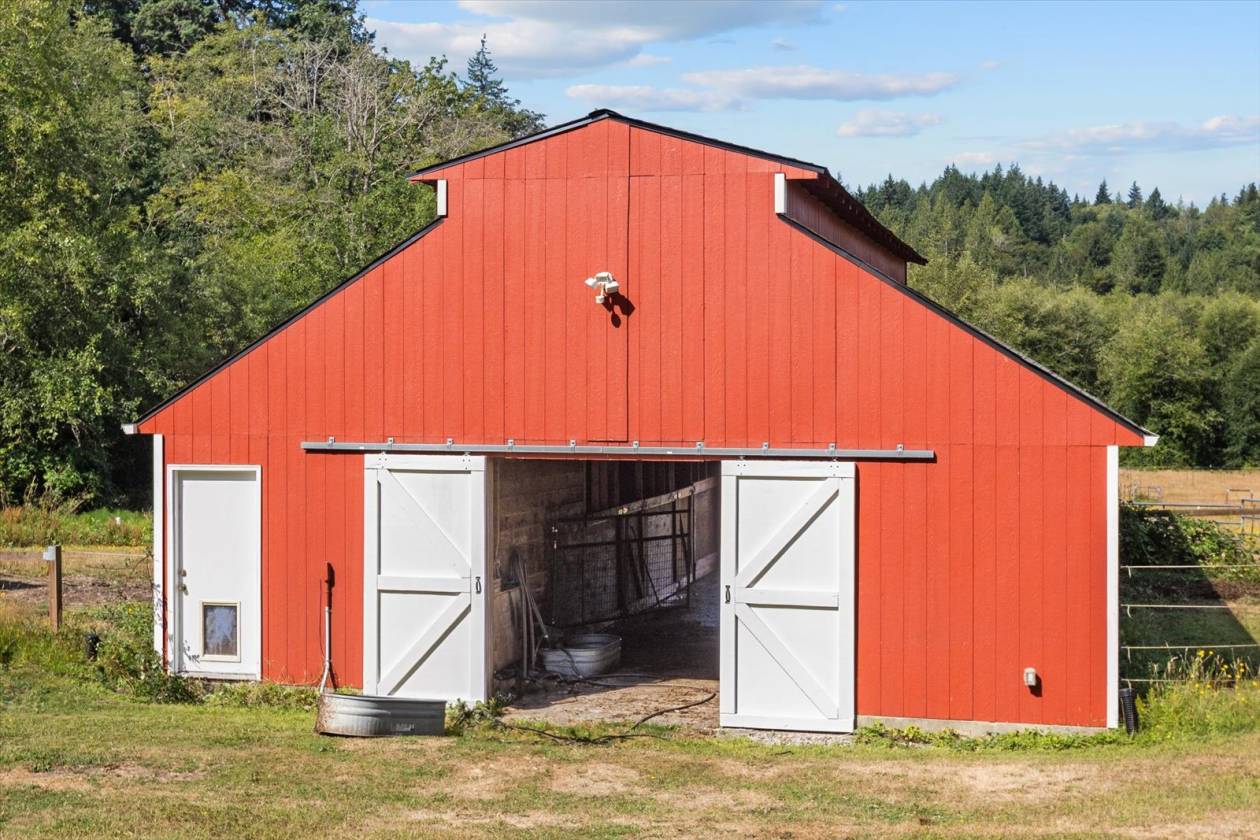 This 18.63-acre equestrian property offers the perfect blend of functionality and serenity. The 1,782 sq ft, single-story home features 3 bedrooms, 1.75 bathrooms, open floorplan, primary suite, a new heat pump, and on-demand hot water. The front half of the property is fenced and cross-fenced, ideal for livestock. A well-appointed 4-stall barn includes a foaling stall, hay loft, tack and feed rooms, with power, water, and LED lighting. Enjoy garden space, fruit trees, an RV hookup, and planned drainage. The detached 2-story shop includes a finished upper level that could easily be converted to a 2-bed, 1-bath ADU or home office. The back half of the property is beautifully forested and attracts frequent wildlife visitors.