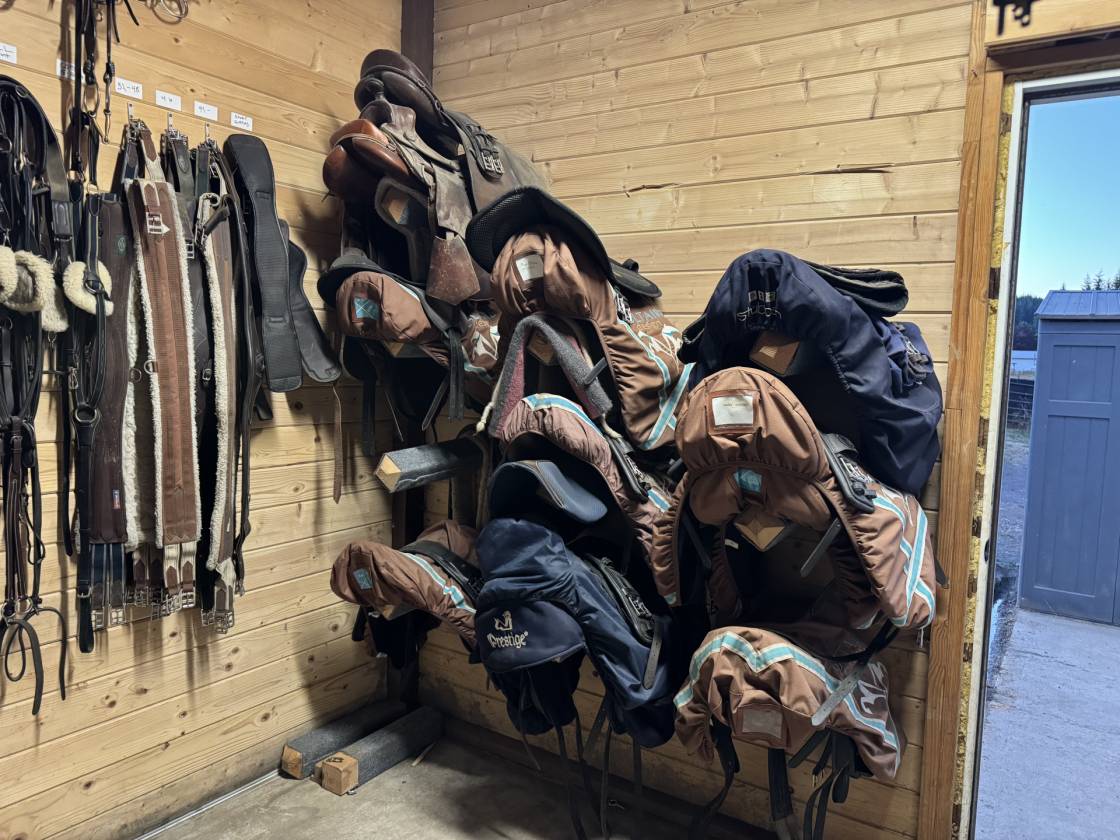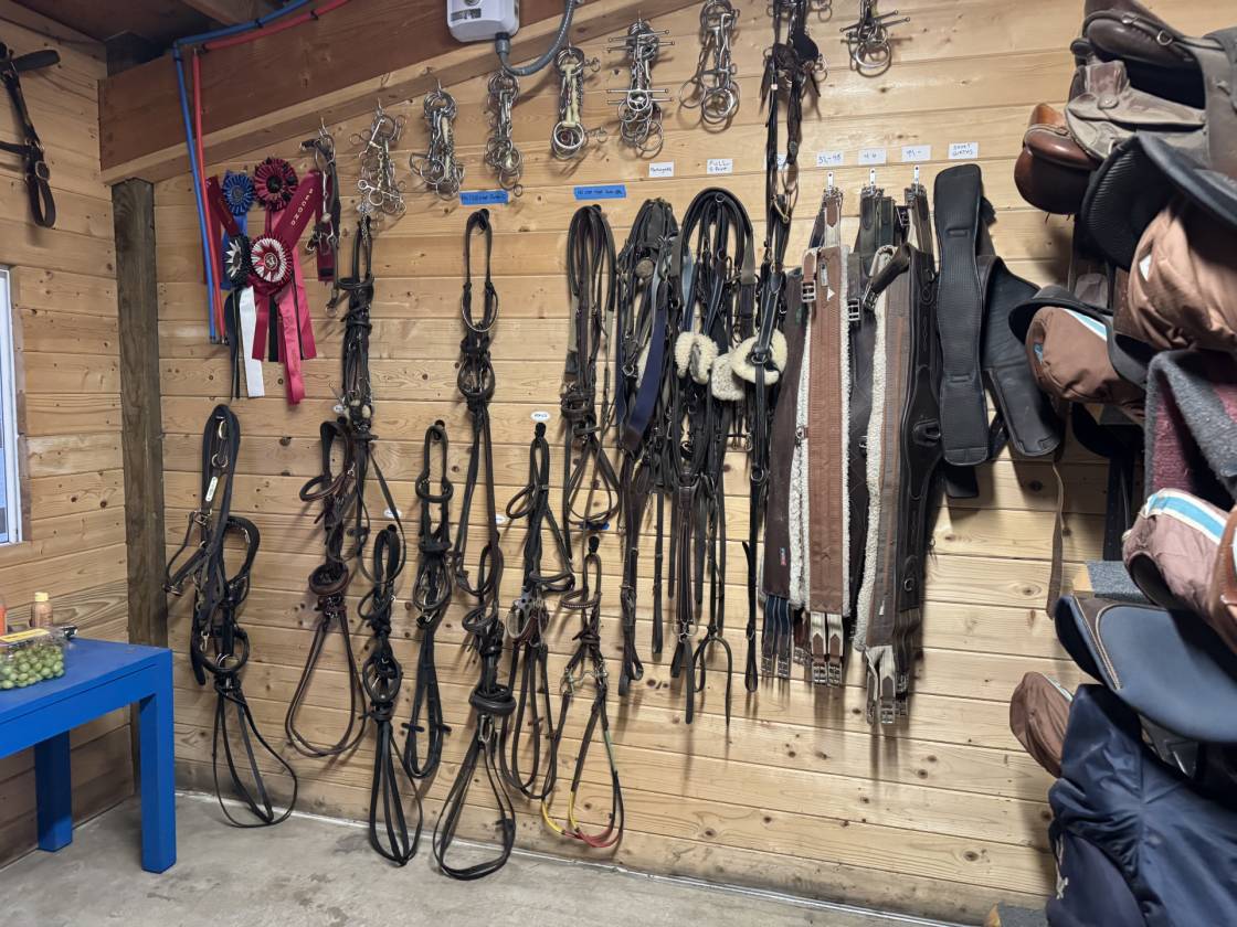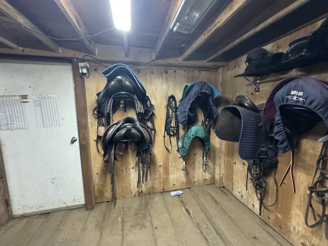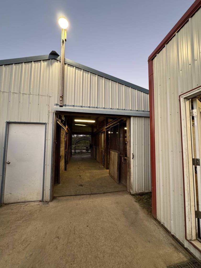 uncovered arena • pen • hay barn • fenced • 2 barns with 16 stalls • 3 Run-in stalls