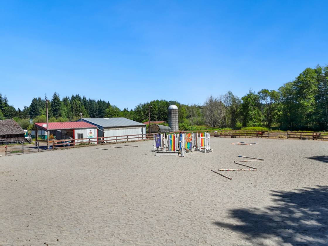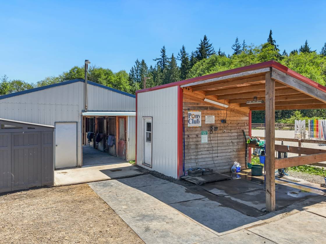 Welcome to Gamble Creek Stables, a licensed Pony Club Riding Center on a professionally designed 5.3-acre equestrian facility in beautiful Poulsbo, WA.. Equestrian amenities include a 125’x150’ lighted arena, 6-stall barn, hay storage, 2 heated tack rooms, wash stall with on-demand hot water heater, 3 run-in shelters, full fencing, and 9 cross-fenced pastures with water access, 10 stall portable barn. Additional 3.44-acre parcel available.