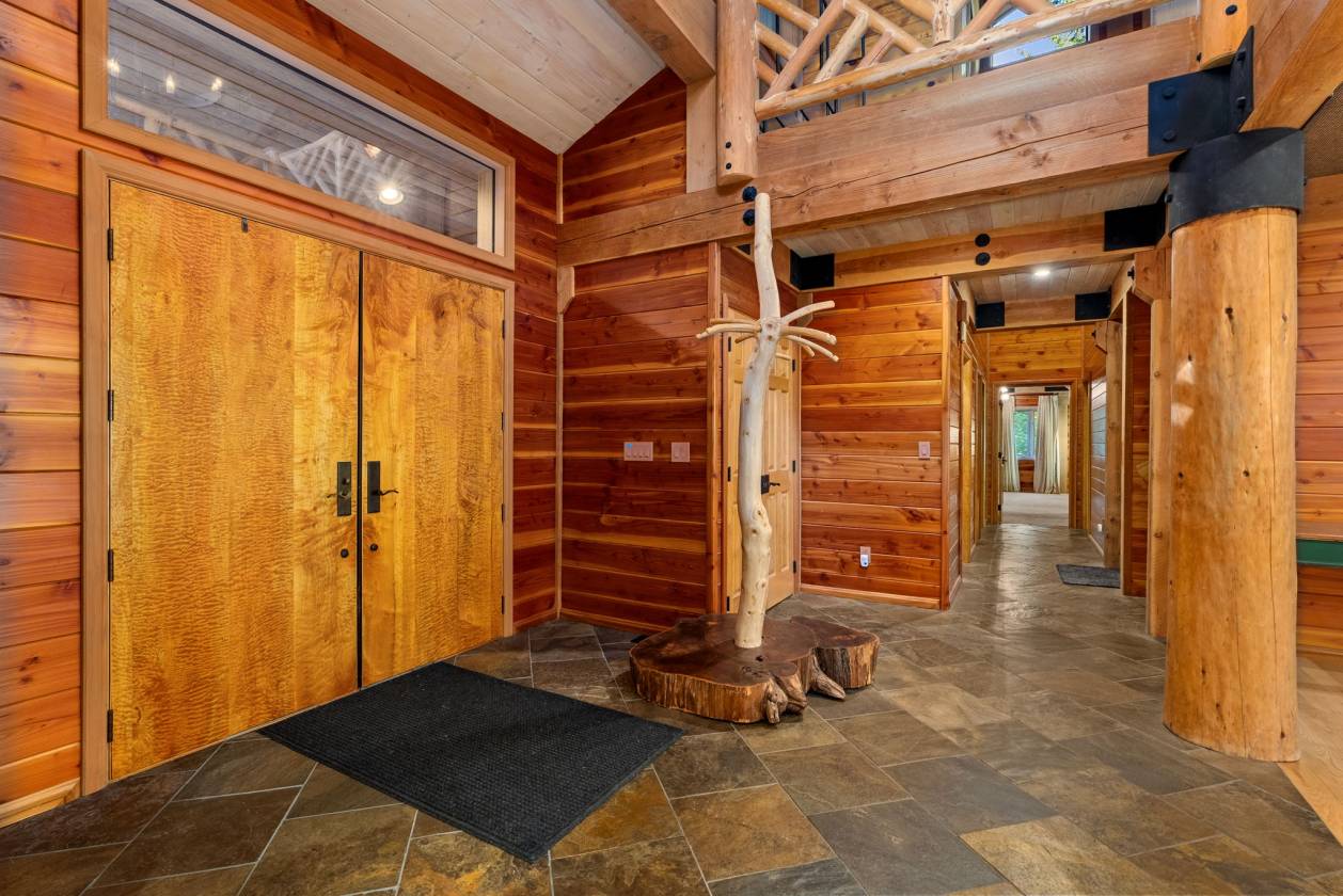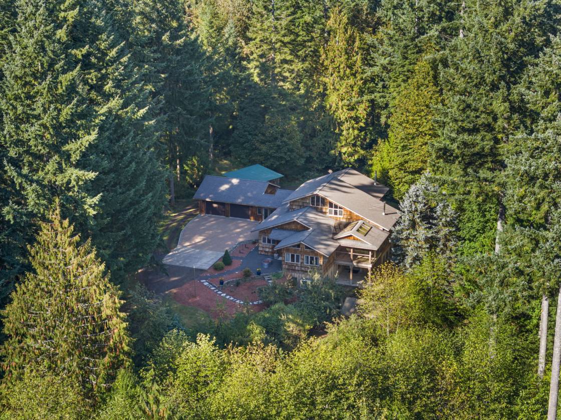 Experience luxury & tranquility in this stunning custom home just shy of 7000 sf w/exquisite old growth cedar & curly maple finishes. Main level features a dream kitchen w/dining area, private office, cozy library & primary suite w/spa inspired bathroom. Upper loft offers additional primary suite or extra living area. Lower level boasts an impressive workshop & expansive guest quarters, including a full kitchen & root cellar. On 86 breathtaking acres of timberland w/over $1M in marketable timber, the property has kept grounds, multiple outbuildings & a 5 acre hayfield. Enjoy a lg. orchard, serene ponds, abundant wildlife, & the ultimate peace & quiet that only a secluded estate can provide. This is more than a home, it's a private retreat.