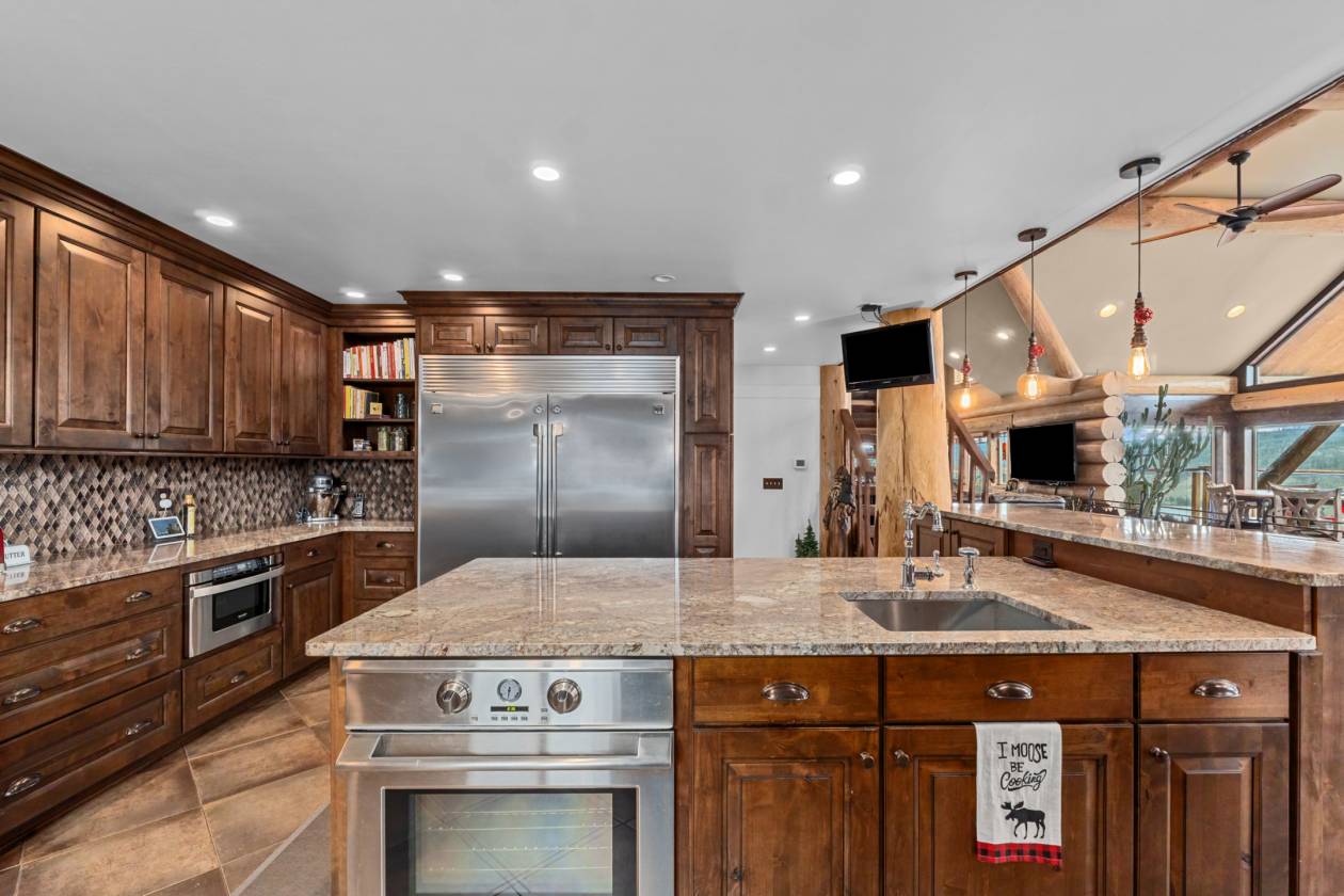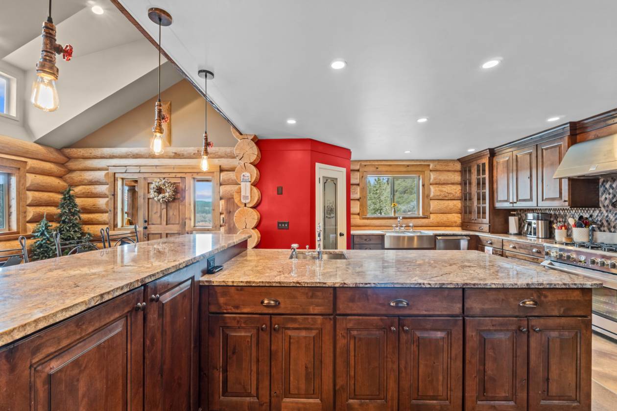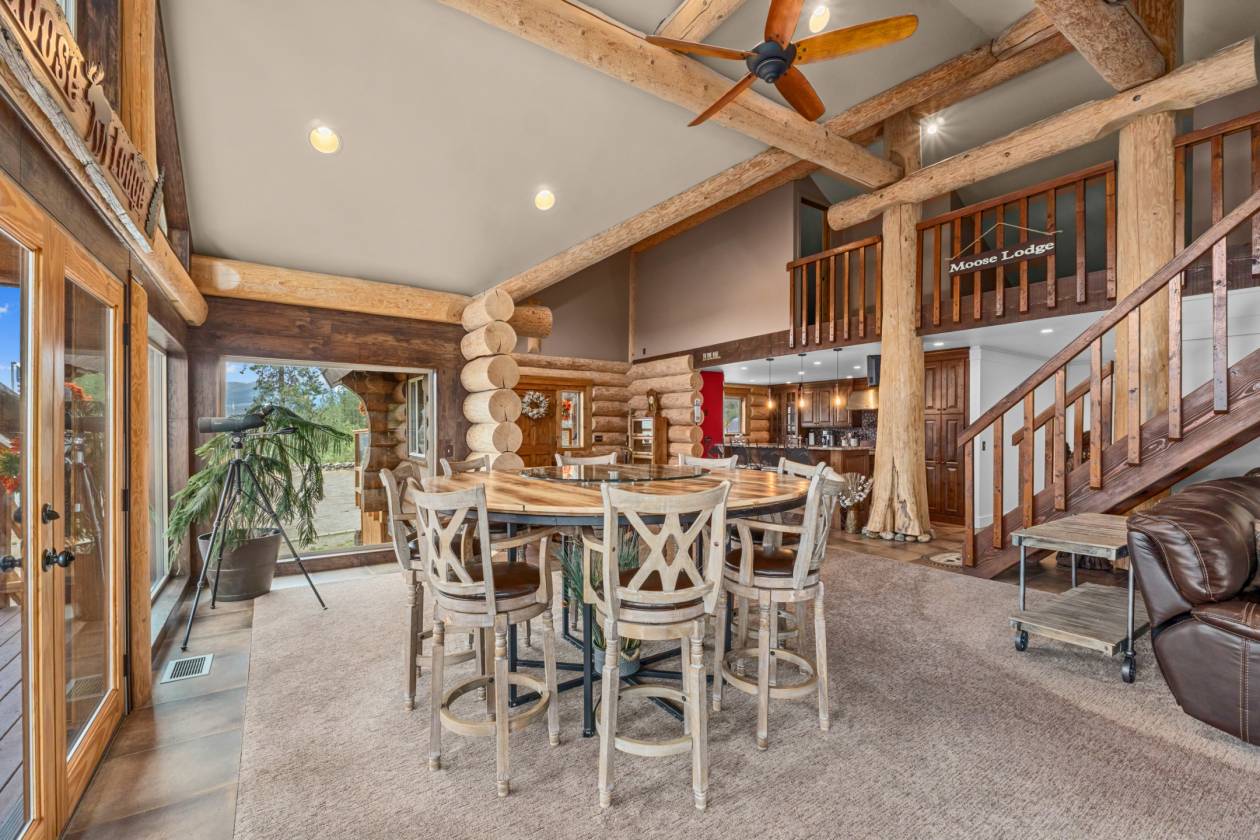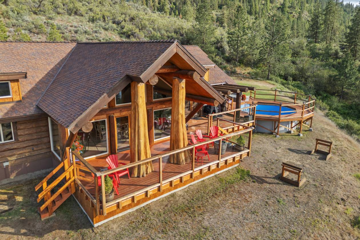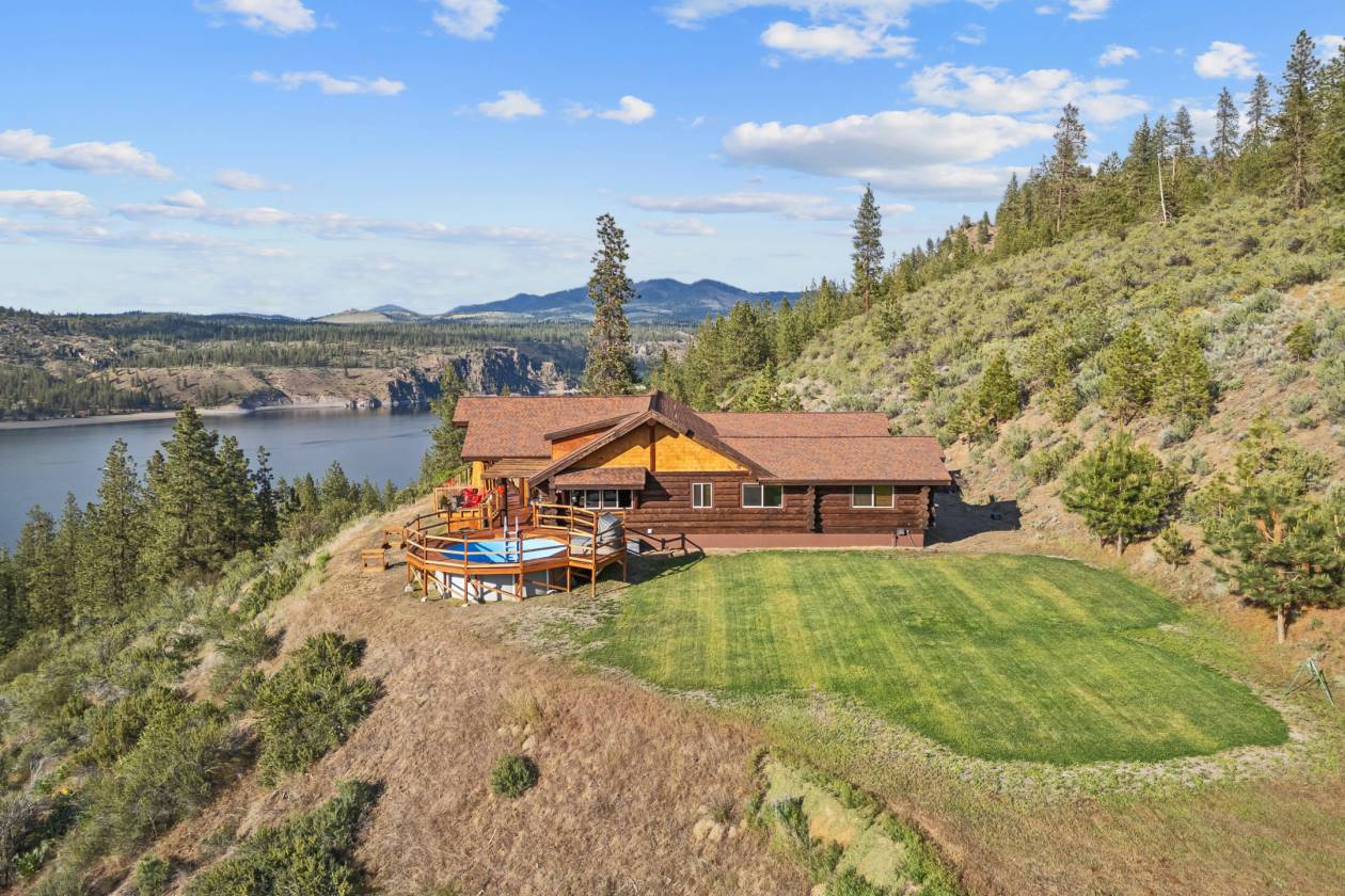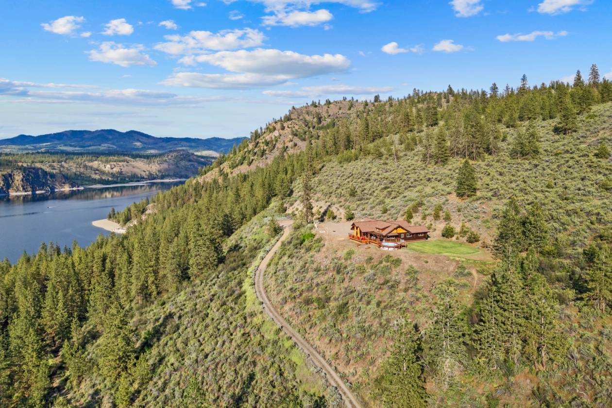 Discover this stunning 4,500 sq ft custom log home set on 40 private acres overlooking the Spokane River, just east of Lake Roosevelt. This meticulously crafted retreat offers breathtaking panoramic views, luxurious finishes & unparalleled tranquility. The gourmet kitchen is a chef's dream, featuring granite countertops, dual ovens, a gas cooktop, & a professional-grade refrigerator. Perfect for entertaining, the spacious dining room w/vaulted ceilings & the bar room both open through French doors to a newly stained deck-ideal for enjoying serene river & countryside vistas. The primary suite has a large walk-in closet & a spa-like bathroom w/a tiled shower & classic clawfoot tub. Enjoy direct access to 640 acres of adjacent DNR land, gov line frontage & nearby the Ft. Spokane boat launch.