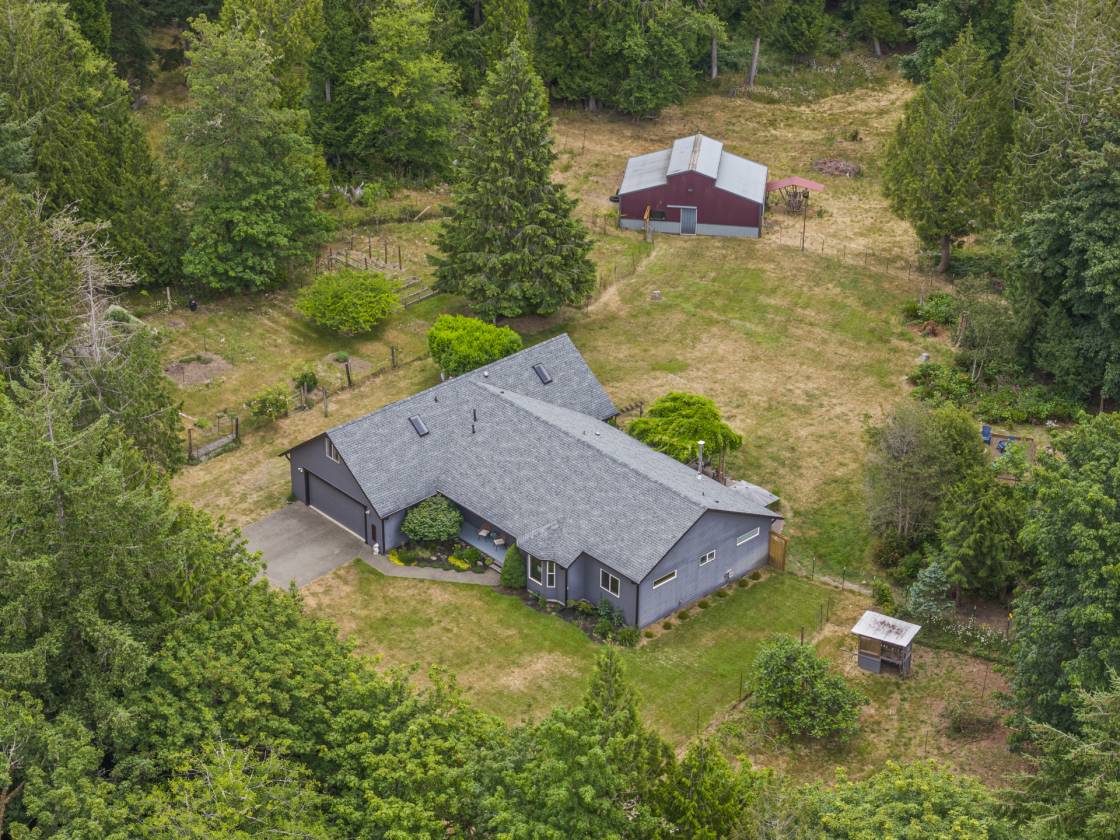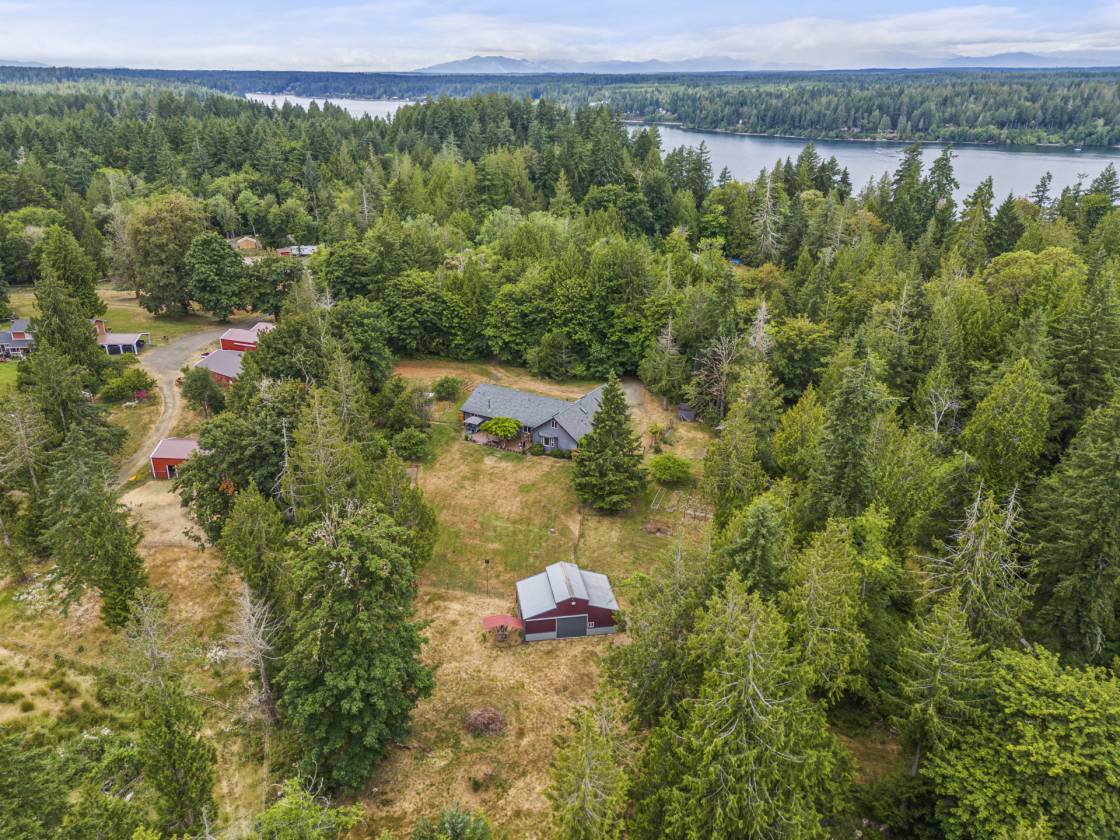 Discover paradise on Harstine Island! This custom 4,336 sqft home offers 4 beds + office/3.25 baths, an ADU-style upstairs & main-level primary suite. The kitchen is a true gathering place w/ its massive quartz island, double ovens, 2 sinks, instant hot water & walk-in pantry. Step outside to 6.9 private acres designed for all your furry and hooved creatures! Offering a 3-stall barn (power & hot water), fenced pastures, chicken coop & multiple sheds. Lush grounds feature gardens, raised beds & greenhouse w/ power. Relax on the deck, soak in the hot tub or gather at the fire pit. Peaceful rural living just 25 mins to Shelton & 1 hr to the Bremerton-Seattle ferry, mins to Jarrell Cove & community activities. See MLS notes for all upgrades!