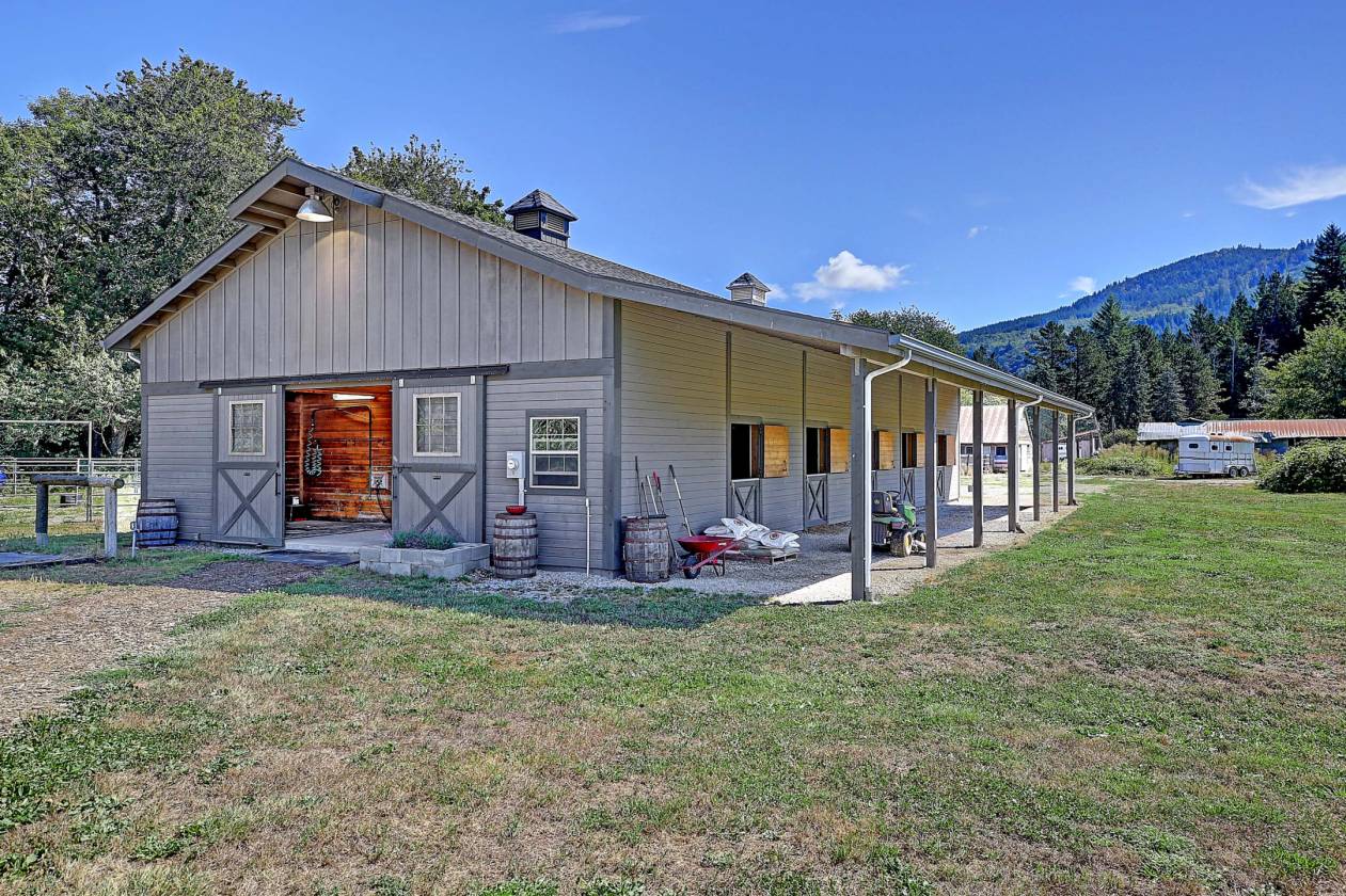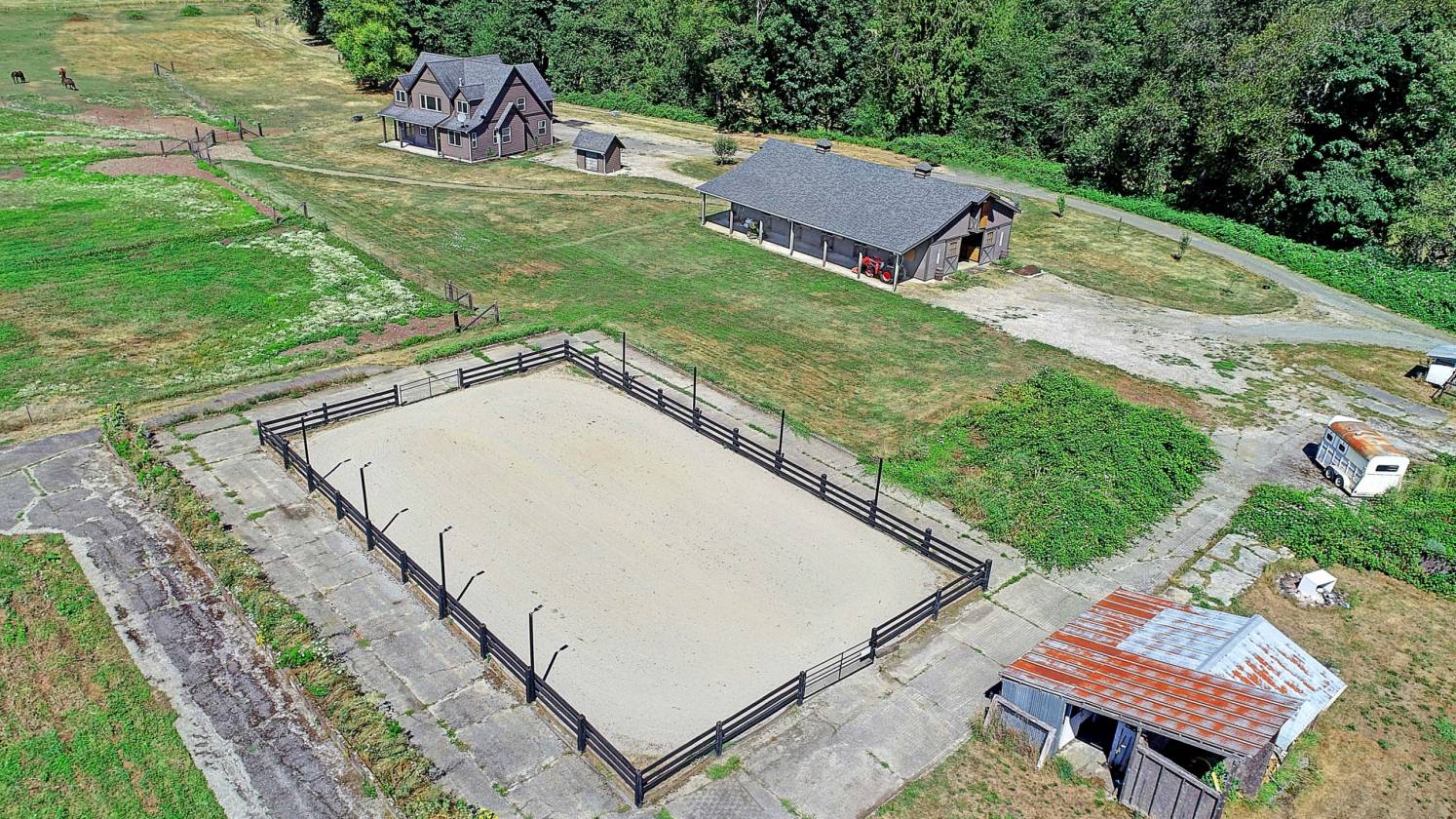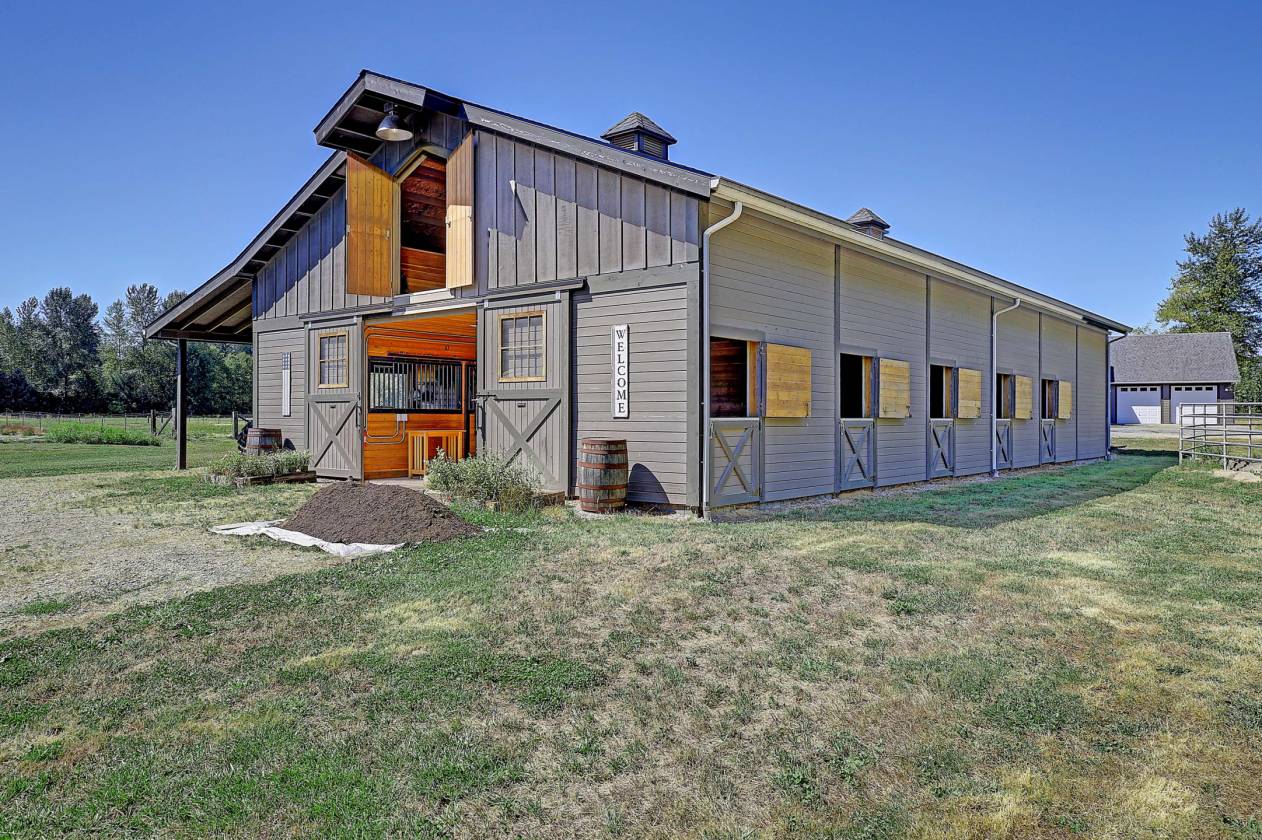 HORSE PROPERTY - Welcome to this beautiful 2,474 sq. ft. home, on 24.68 acres! Built in 2012, featuring 3 bedrooms, 2.5 baths, 22-foot ceilings, hardwood floors, maple kitchen cabinets, farm sink, quartz counter tops, stainless steel appliances, spacious mudroom + wired for a whole-house generator. GORGEOUS 10-stall custom barn w/ heated wash rack, tack room, and 500-bale hay loft. Additional amenities include a round pen area, 100x60 outdoor arena, outbuildings, lush fully fenced pastures, & two RV hookups. The facility can generate income from horse boarding and RV spots, making it both a dream lifestyle property and a smart investment. Enjoy nearby access to White Horse Centennial/Pilchuck Trail, and fishing at Stillaguamish River! Pre-approval required prior to showing - Thank you!