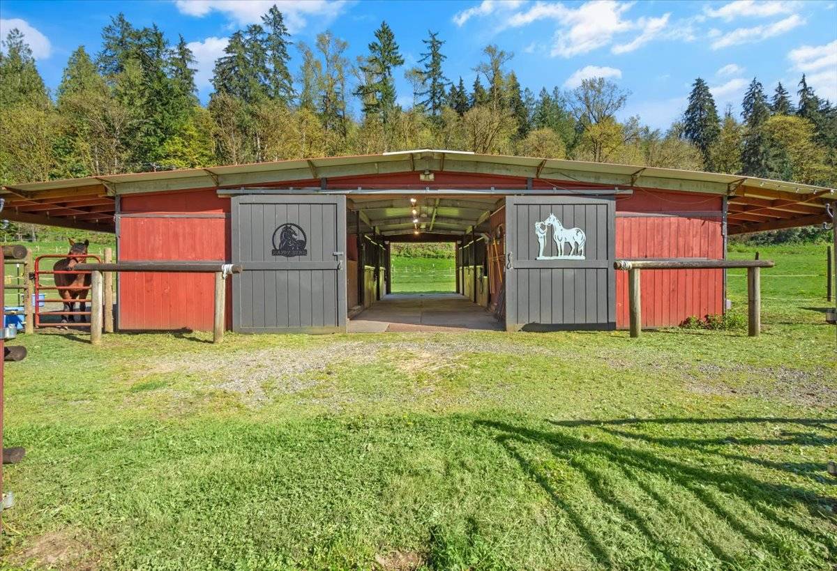 SOLD, over asking price for $257,500 due to multiple offers! Feel free to call me if you need an Equestrian Property Specialist. You will fall in love with Happy Herd Farm the minute you drive through the gated entry into this serene sanctuary by the Skykomish River. The updated two-story modern farmhouse features a brand new roof, three bedrooms, with the Primary Suite on the Main floor with a 5-piece ensuite featuring a garden tub, separate shower, a double vanity, a walk-in closet with organizer, and a tranquil view of the hills, pastures, and your horses. The newly updated kitchen has recessed lighting, Quartz countertops, beautiful cupboards, an eating bar, and a large pantry. The large dining room, located off the kitchen, features a slider to the deck for easy entertaining, summer BBQs, and a fenced dog run. The cozy living room has views of your horses, pastures, a barn, and a 100' X 208' outdoor arena with room for your round pen. Upstairs features an oversized loft with room for an office or hobby area, and two more large bedrooms. This gorgeous 9.36-acre property is equestrian-ready and well-designed for eco-friendly efficiency and healthy horses! The 4-stall barn has hay and grain storage (or possibly a 5th stall), a tack room, and fenced runs off all the stalls. Fenced and cross-fenced pastures for easy pasture, mud management, and a covered manure composting system. The arena area serves well as a "dry" paddock if needed. A mini barn with two stalls, a feed/storage room, a nesting box with a covered and secure chicken coup, a fenced raised bed garden area, and 4 apple trees. There are riding trails galore, just a trailer ride down to the end of the road where you can ride for miles, and down to the river. Only 30 minutes to Woodinville, 40 minutes to Redmond, and under an hour to Seattle and Bellevue in regular traffic! Come and make your dreams come true on your piece of paradise. This one is a rare gem!
