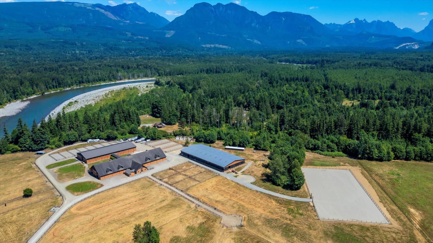 Sky River Equestrian Center-Now offered with gorgeous custom home! A 40+ acre State-of-the-Art Horse Facility with 1300+ feet of Skykomish River frontage. Located behind the gates of Sky River Estates the impressive 4,939 sq ft home boasts vaulted ceilings, high-end finishes, grand fireplace & two primary bedrooms. 50+ stall facility with wash racks, grooming & shoeing bays, hay loft, heated tack rooms & lounge. Covered 100'x216' arena with viewing deck. 80'x180' mirrored arena with 50' round pen & brand-new Centaur Equineciser. New 150'x300' outdoor arena. Acres of fenced & cross-fenced pastures with 12 all-weather gravel paddocks. Heated automatic waterers in stalls & paddocks. 3 bd/2 bath managers quarters & 1 bd/1 bath loft apartment.