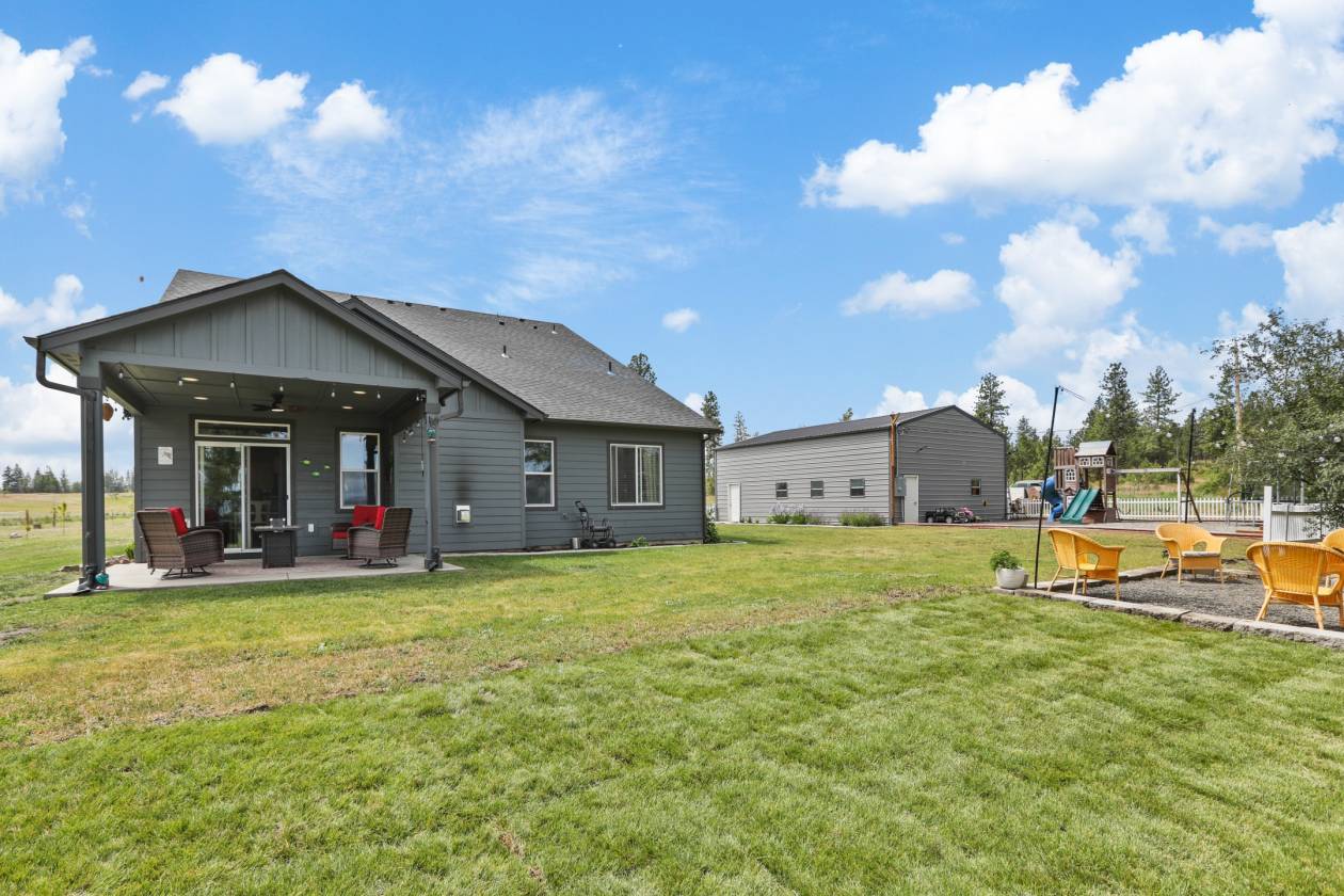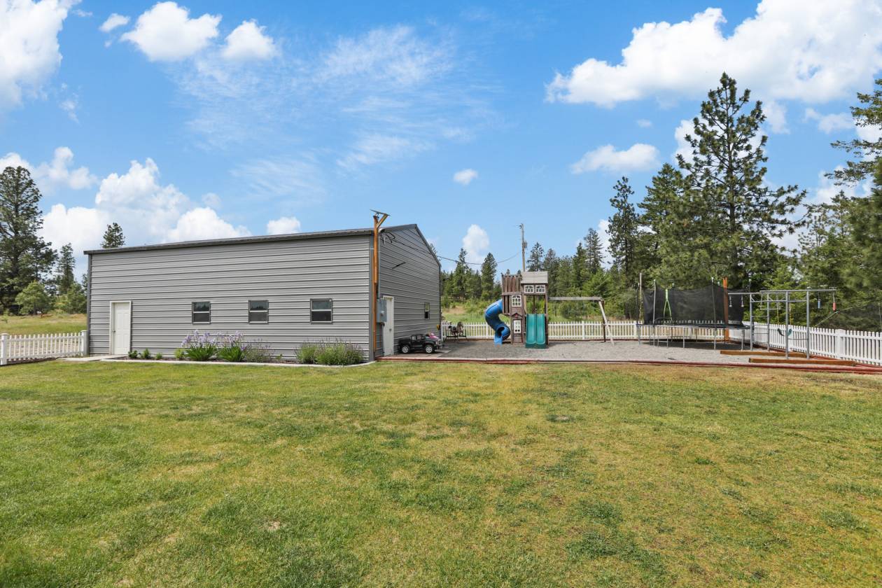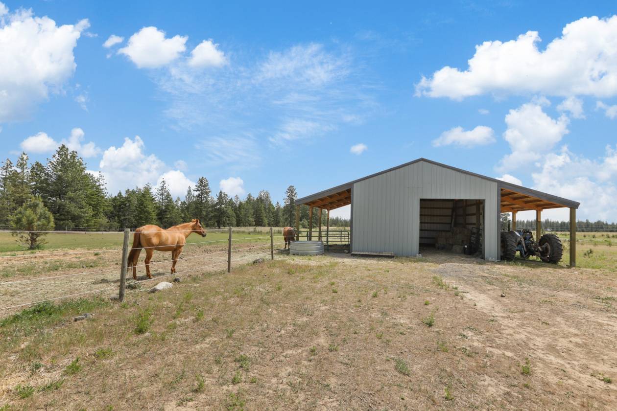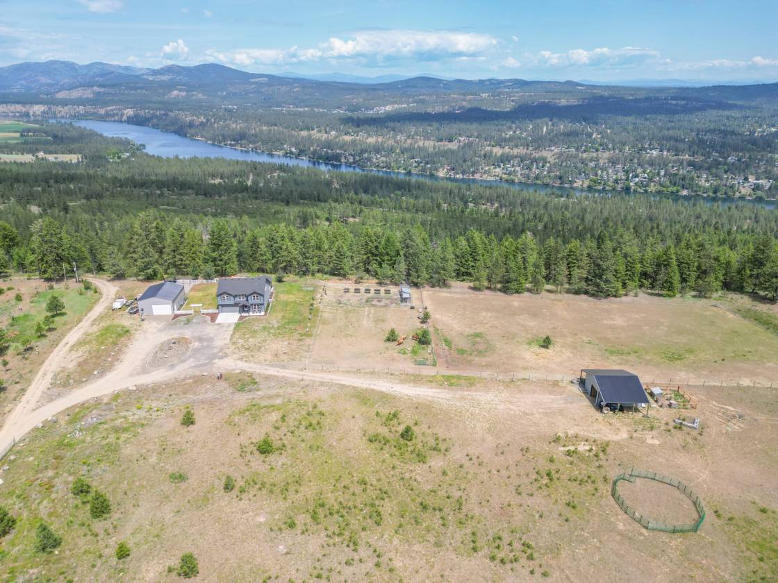 Peace, Tranquility, Nature. This property sits above the lake offers sweeping views, 4 bedrooms, an office, 2.5 baths, family room loft, 2 car garage, 30x40 shop, the barn has 2 stalls adjacent field for your horses, chicken coop and fenced garden area. Relax at the firepit or sit under your covered patio while the children play on an exceptional playground. You'll never yield for water at this property with the 3,000-gallon cistern for your garden, yard and home.