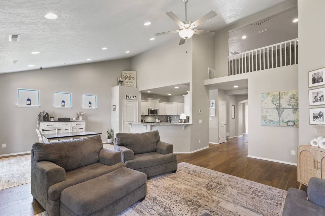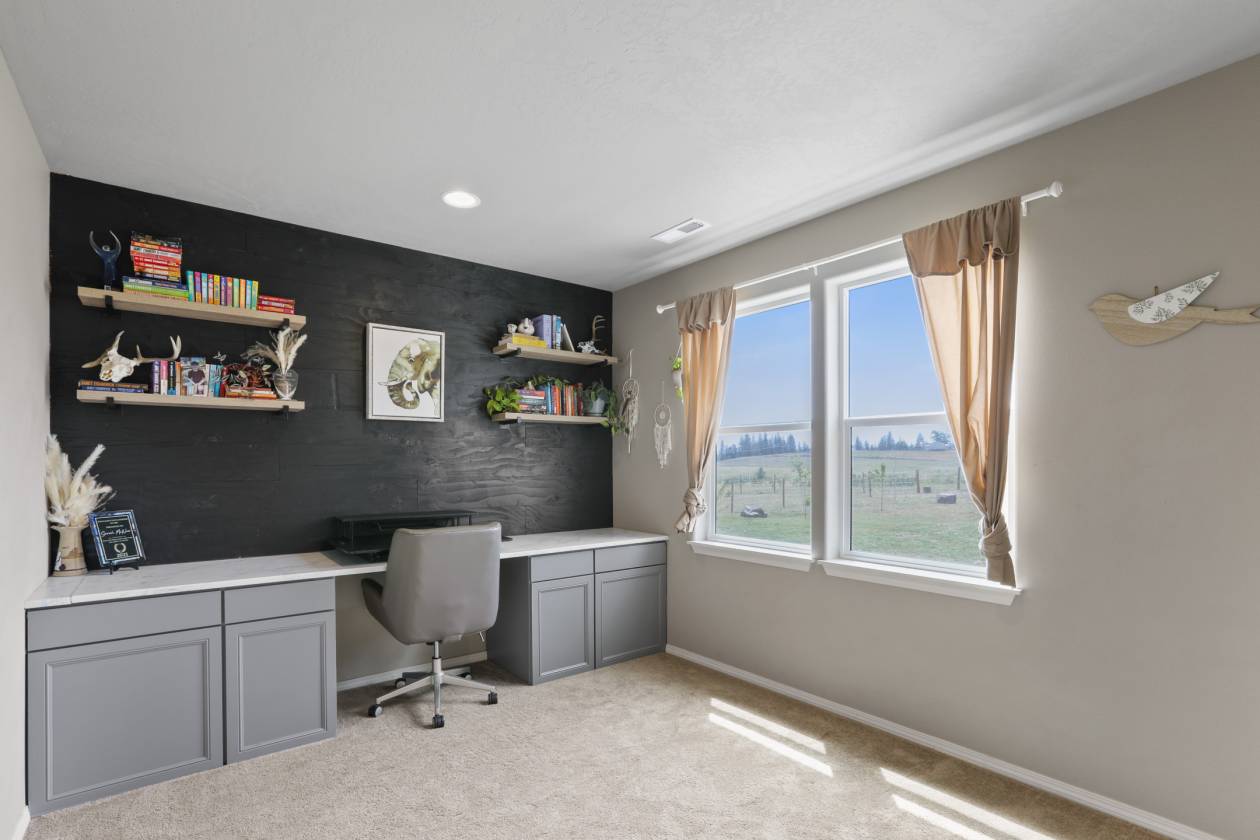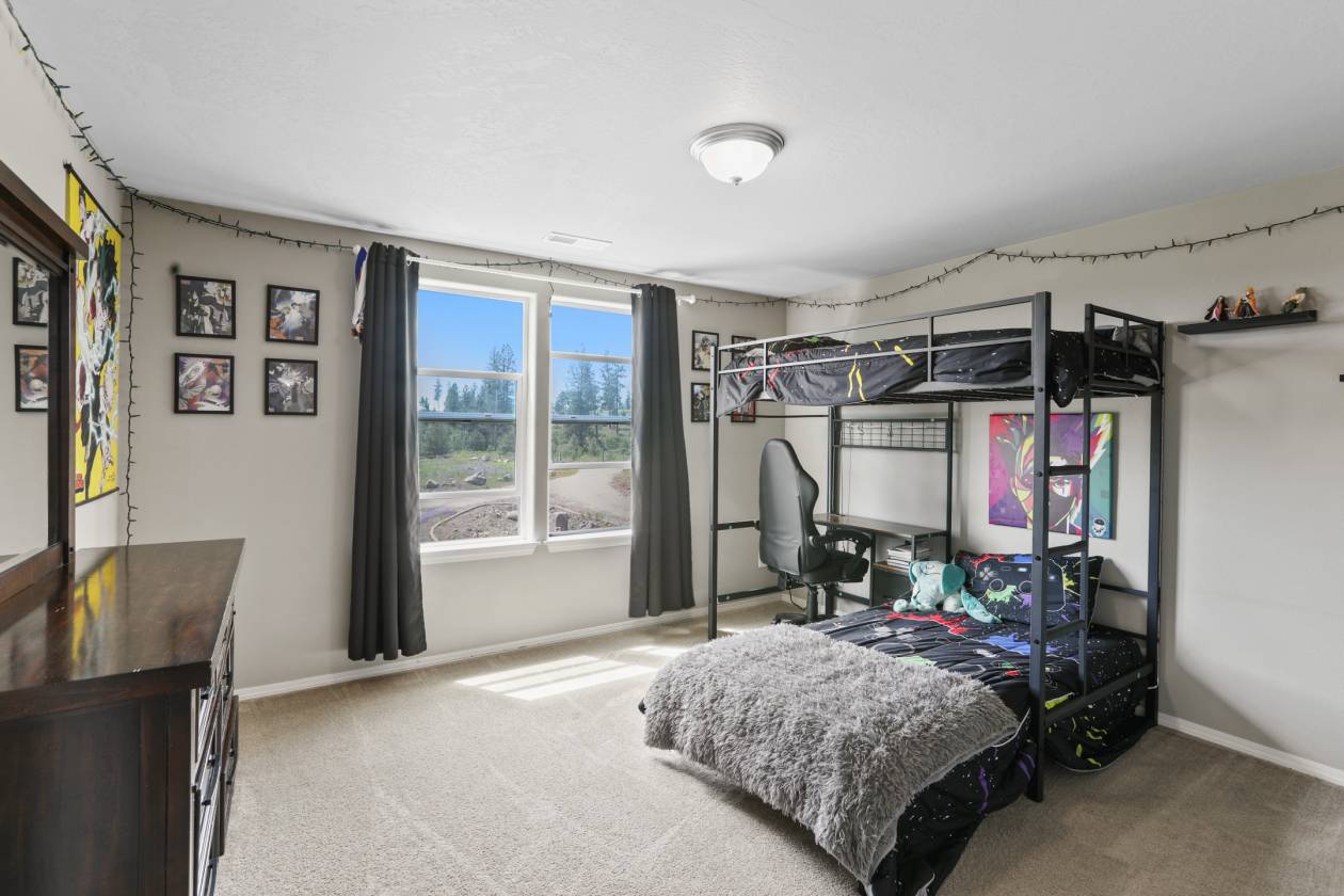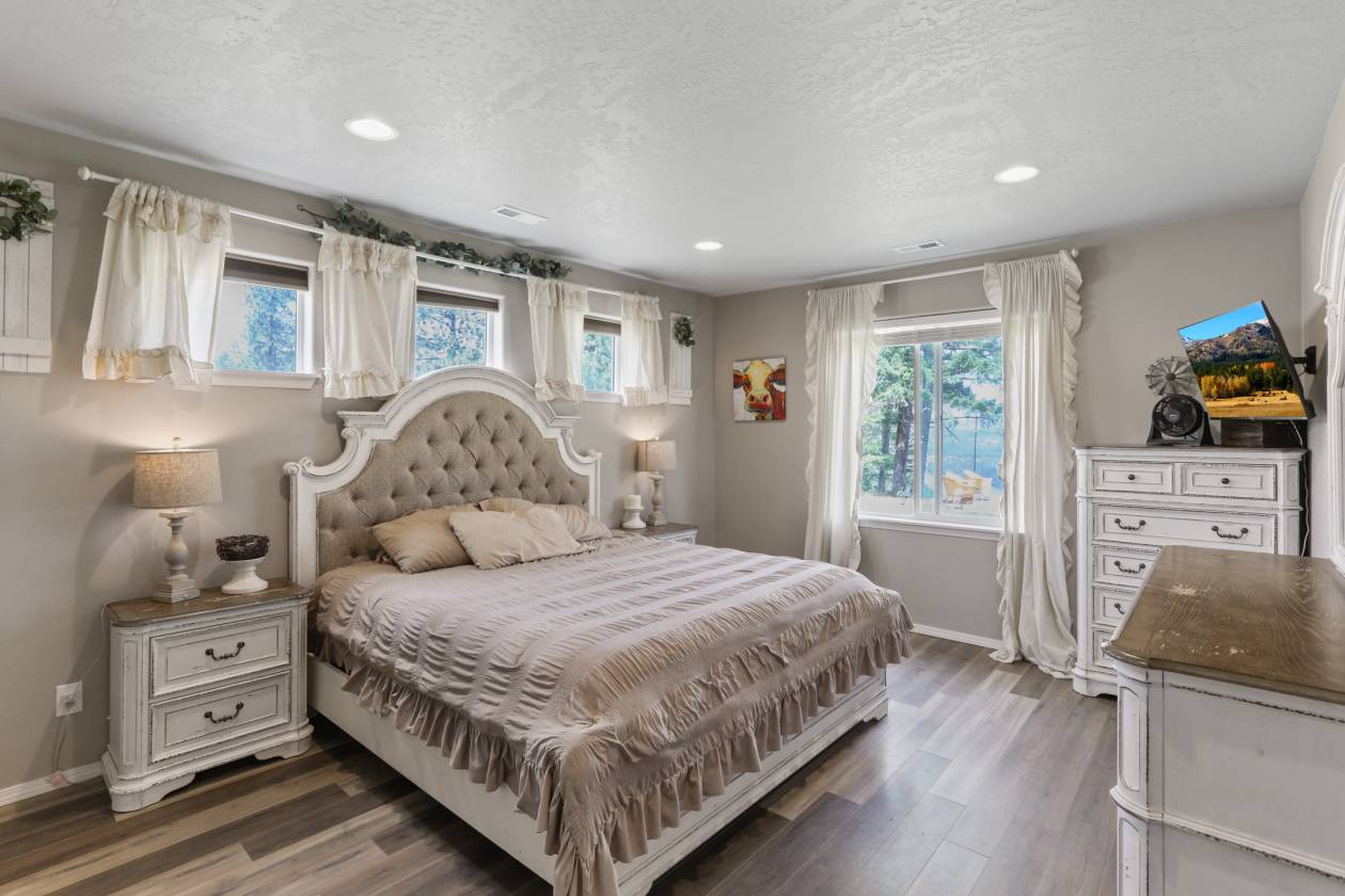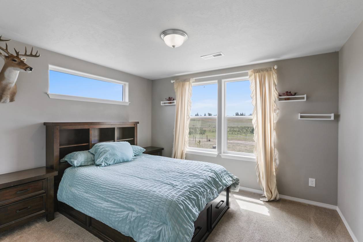 Peace, Tranquility, Nature. This property sits above the lake offers sweeping views, 4 bedrooms, an office, 2.5 baths, family room loft, 2 car garage, 30x40 shop, the barn has 2 stalls adjacent field for your horses, chicken coop and fenced garden area. Relax at the firepit or sit under your covered patio while the children play on an exceptional playground. You'll never yield for water at this property with the 3,000-gallon cistern for your garden, yard and home.