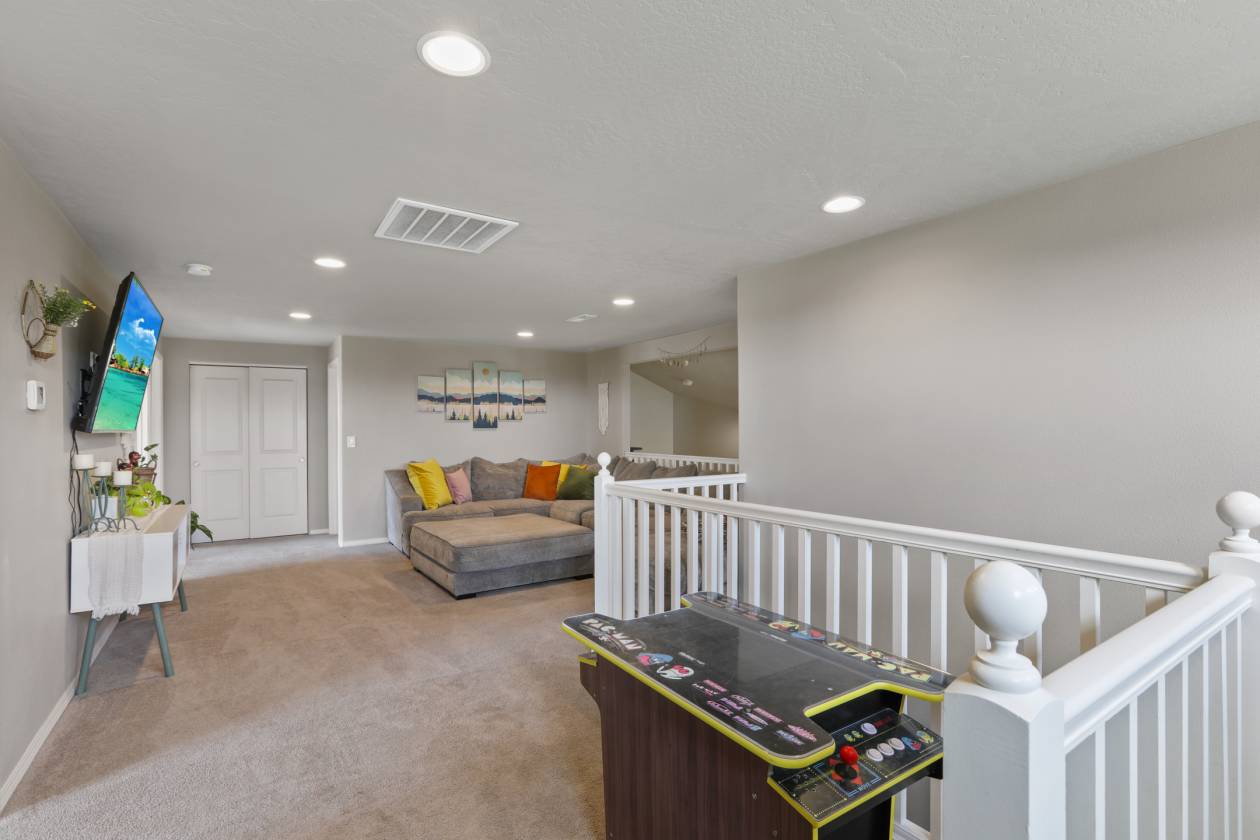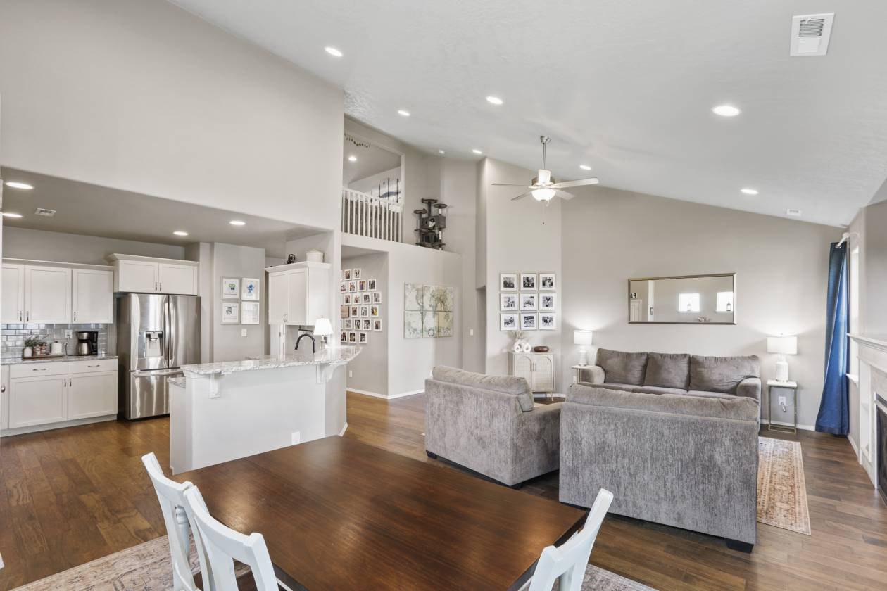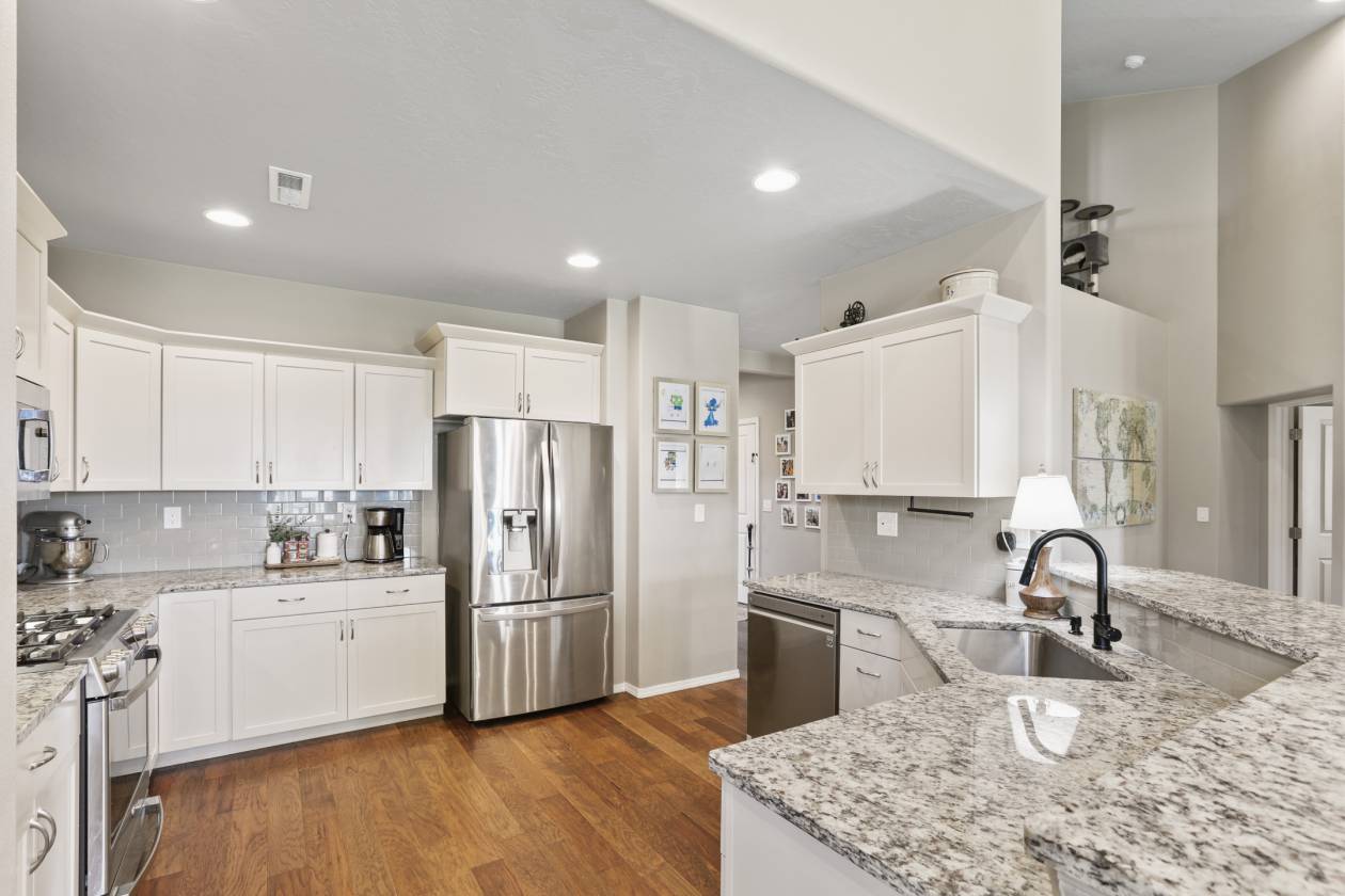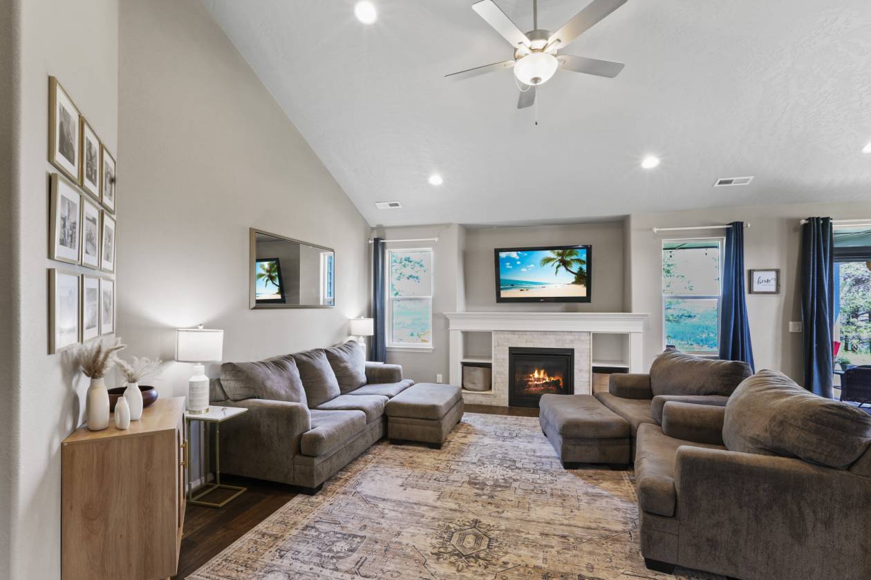 Peace, Tranquility, Nature. This property sits above the lake offers sweeping views, 4 bedrooms, an office, 2.5 baths, family room loft, 2 car garage, 30x40 shop, the barn has 2 stalls adjacent field for your horses, chicken coop and fenced garden area. Relax at the firepit or sit under your covered patio while the children play on an exceptional playground. You'll never yield for water at this property with the 3,000-gallon cistern for your garden, yard and home.