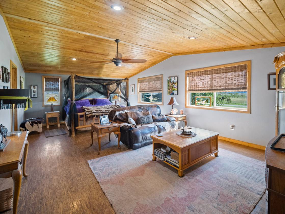 The equestrian portion includes a 160x104 indoor riding arena with a 24x160 stall area—currently housing 3 stalls, with room for up to 10. The adjacent 8-stall, 36x96, barn offers heat, water, and a tack room. Additional features include a 200x400 outdoor sand arena and four outdoor paddocks.