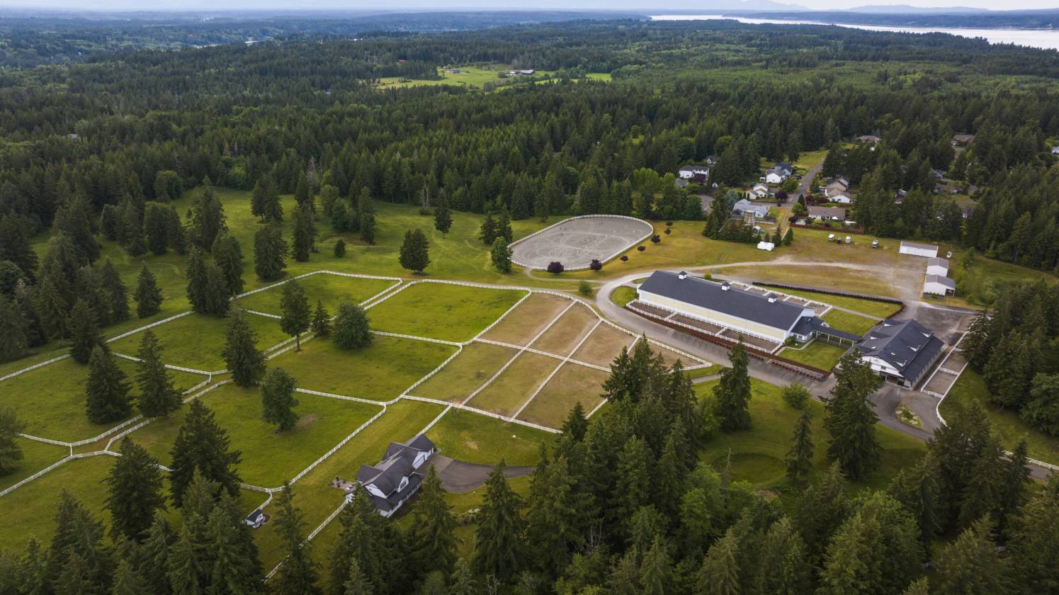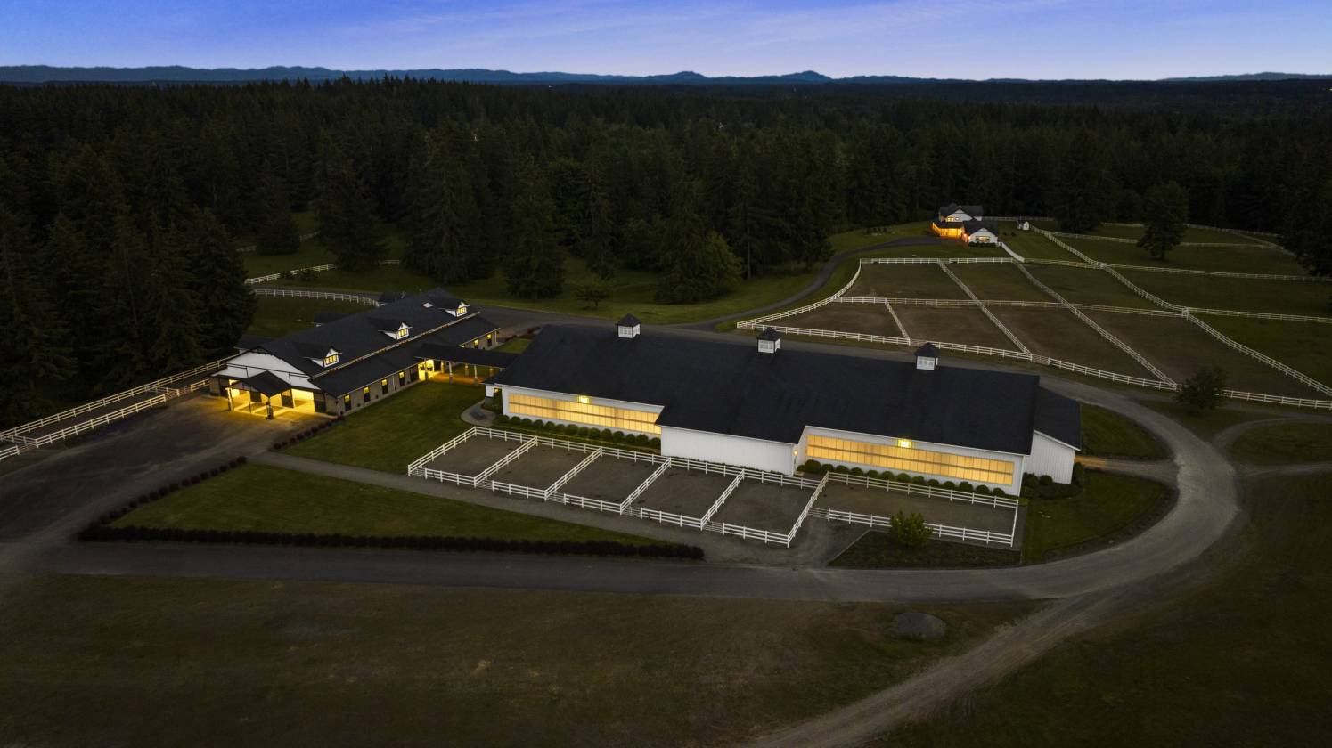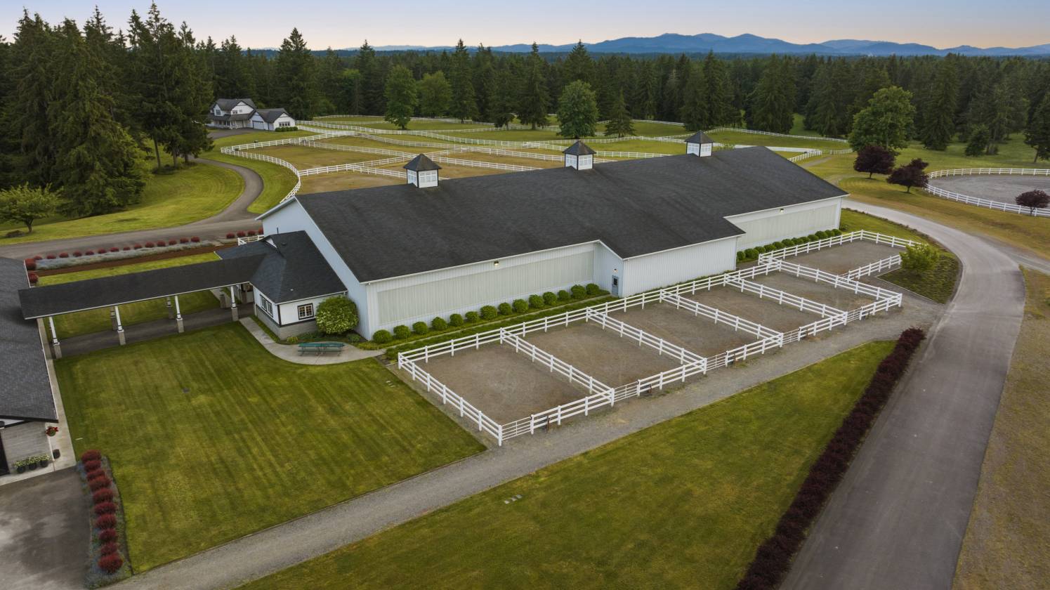 NEW PRICE!! Welcome to 6504 44th Ave NE, Olympia, WA 98516, a one-of-a-kind equestrian estate. Nestled on 118 picturesque acres, this extraordinary property is a horse lover's paradise, offering unparalleled facilities and luxurious living spaces. It is a peaceful, private retreat that is ten minutes to all the amenities of town and less than an hour to SeaTac airport. The equestrian features are truly remarkable. The property boasts an incredible barn containing twenty-four 14x14 block stalls with rubber mats and automatic waterers, 14 foot aisleways, two 14x14 hot water wash racks, three grooming/tack-up areas, and a separate covered shoeing area. The heated tack room is equipped with individual tack lockers, and a tack cleaning area with a sink and hot water. There are two heated bathrooms with a shower, and a heated laundry/drying room. The large feed room provides ample storage to keep everything organized. There is also a beautiful two-bedroom apartment above the barn which is convenient for staff or guests. The expansive 80 x 220 indoor riding arena is perfect for year-round training and events, and is complemented by a heated viewing lounge for comfortable spectating. The large office suite is ideal for managing equestrian operations or personal business. Located next to the indoor arena is a 150 x 300 outdoor/jump arena that is excellent for training and competitions. Large individual grass pastures and a variety of individual paddocks ensure the best turnout options for your horses, while the secure white vinyl fencing with hot wire support adds both functionality and aesthetic appeal. Comprehensive storage and maintenance facilities include a large, fully enclosed 1,500 SQ FT hay/shavings barn, a 1,500 SQ FT three-sided equipment storage barn and a huge 1,900 SQ FT 4-bay shop. With ample trailer parking, miles of groomed trails and open fields, the estate offers endless opportunities for private use or for hosting equestrian events. The living space inside the beautiful 3,123 square foot home is equally impressive. The main floor features an open great room concept with a gas fireplace creating a cozy and inviting space. The large kitchen features a center island and walk-in pantry, and leads out to a gorgeous covered dining area that looks out over the pastoral views. A large laundry room with cabinets and a sink connects directly to the four car garage. The primary suite is conveniently located on the main floor and features a full bath and walk-in closet, offering a luxurious and spacious retreat. A second primary suite is located on the second floor which provides additional privacy and comfort for guests. The second floor also features a bonus room with a wet bar, perfect for a relaxing night in. This exceptional estate combines top-tier equestrian amenities with luxurious living accommodations, making it the perfect private retreat. Don’t miss the opportunity to own this dream equestrian property in Olympia, WA.