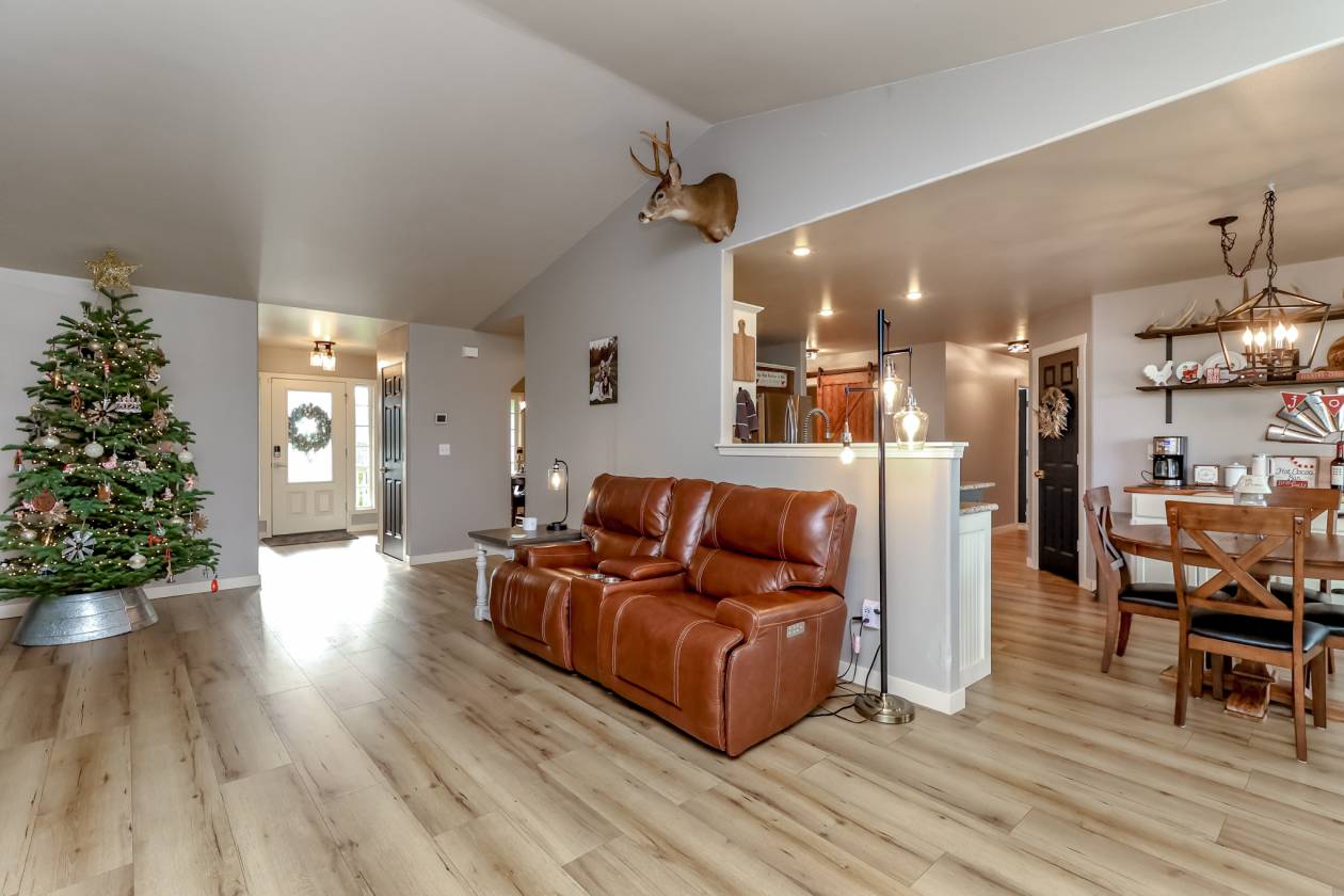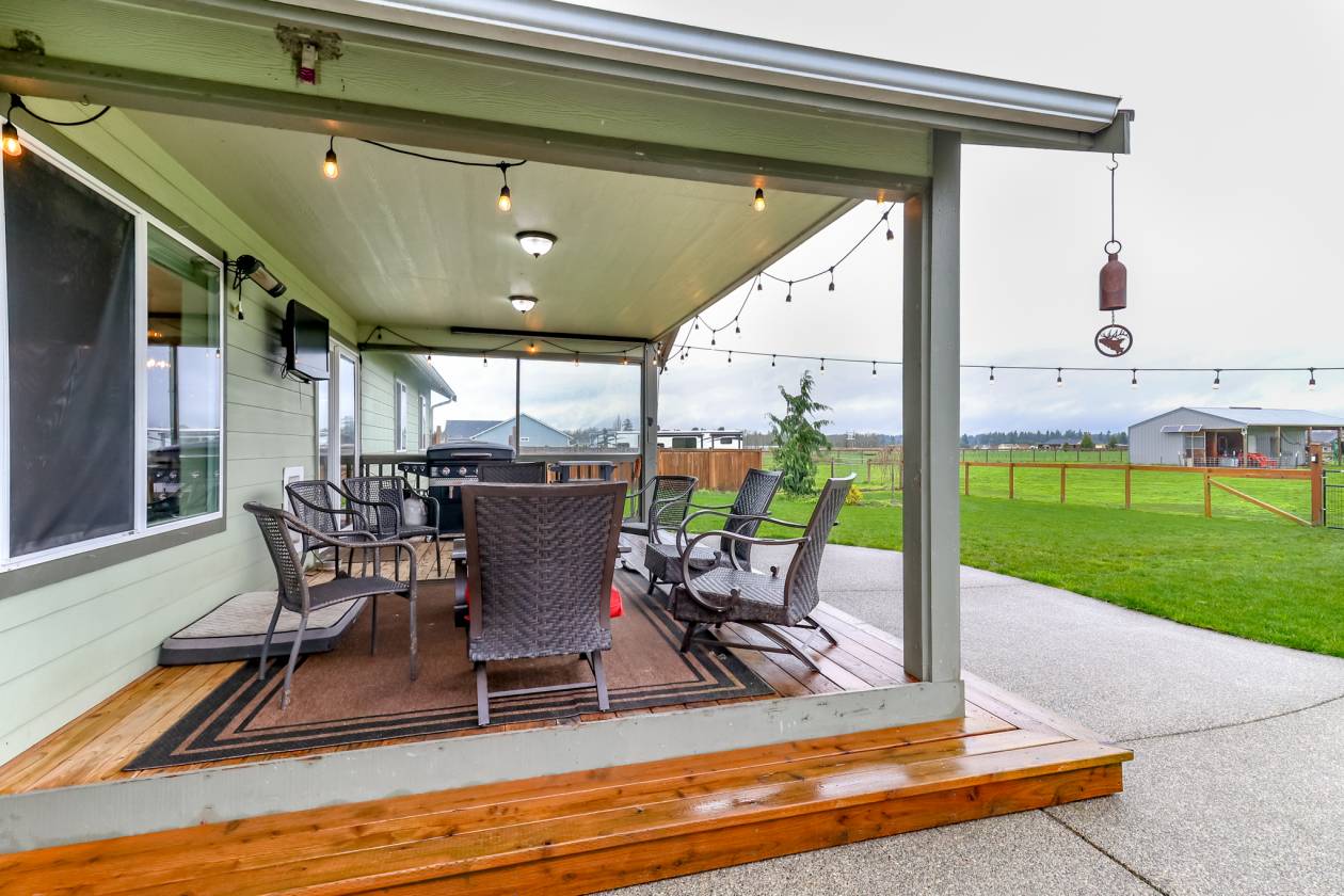 Don't miss this one! 5 Acre 2200 sf 4 bed 2 bath 3 car garage is ready for you! Fenced/cross fenced w/barn for HORSES, SHEEP, YOU NAME IT! Beautiful mountain & territorial views! Outside: 1100 sf exposed aggregate patio, sprinklers, fire pit, separate Ag water meter w/lower rate, sport court for basketball/pickleball, 2 stall barn plus equestrian fencing surrounding the entire back of the property! Back deck wall mounted tv +elec heater incl. RV Parking and room for lots of parking on the driveway. Inside: New Lifeproof laminate, new interior trim and paint, updated kitchen w/painted cabinetry, garbage disp & undermount lights, Large LG Fridge, W/D incl, updated main bath, vanity, granite, lighting. Start your new farm life adventure today!