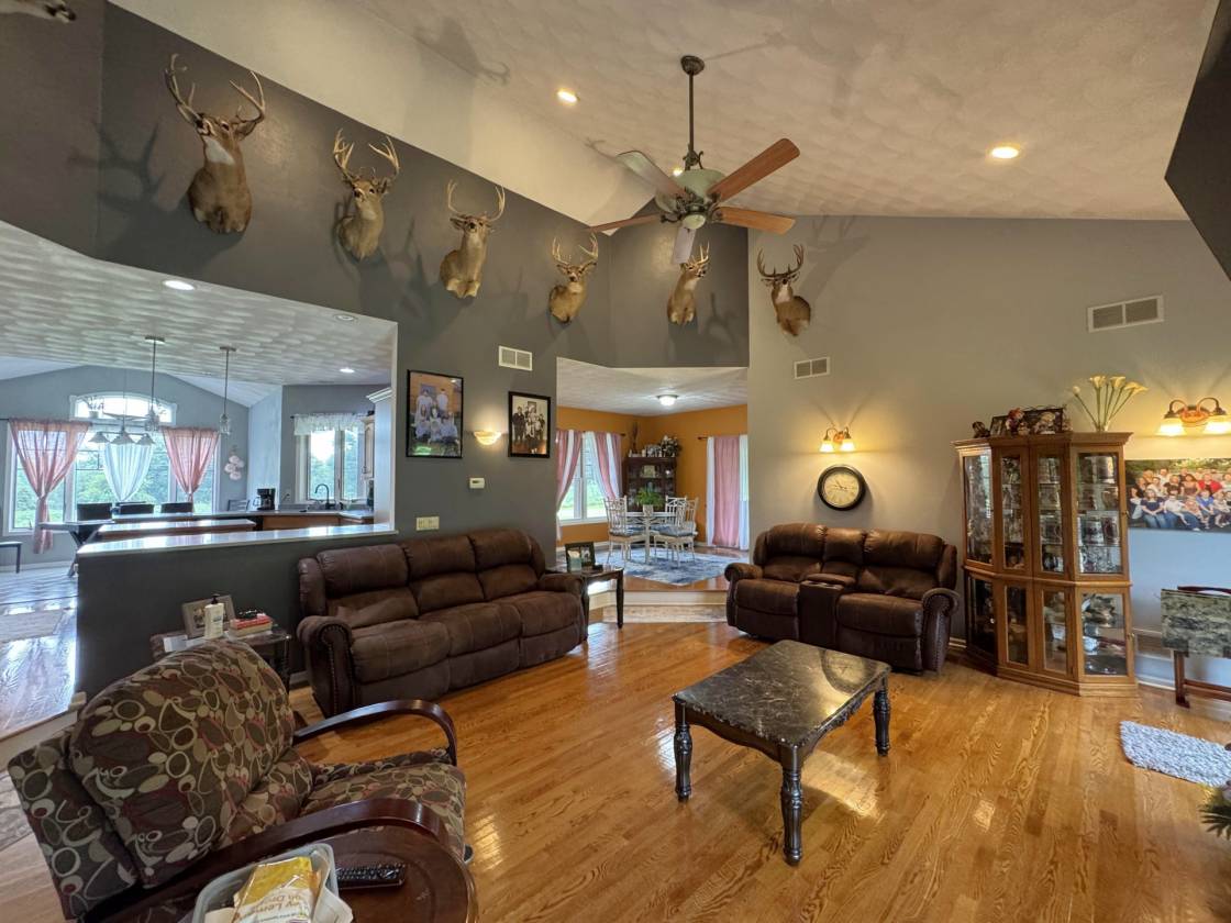 Surrounded by peaceful countryside, this property offers unmatched privacy & an abundance of possibilities within 12+ acres, w/a small creek along the back of the property, rented farmland for passive income & several acres to hunt or simply enjoy. Every detail of the home speaks to quality & care, from the beautiful wood floors to the vaulted ceilings in the sunken in the living room w/gas fireplace, the soft close drawers & doors in the Bauman kitchen to the screened-in porch. The primary bedrooms offers a jack & jill sink, heated floor & a large walk-in closet along w/a walk out to the deck. Oversized 2nd & 3rd bedrooms are also on the main floor w/a walk through to the 2nd bathroom. In the LL you’ll be pleased to find a spacious family room with dry bar to entertain & tons of storage.