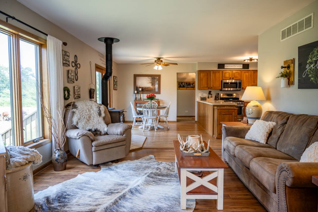 This nearly 4,000 sq ft, 4 bedroom plus a bonus room, and 3.5 bath home offers space, comfort, and endless country charm. With the added bonus of being close to Castle Rock Lake and beautiful riding trails. Set on 10 scenic acres, it features a beautifully finished rustic basement with a spacious rec room and walk-out access—perfect for entertaining or relaxing. The basement also includes a bonus office/den as well as unfinished storage and utility space. The property includes a 2-car attached insulated garage, a point well for the horses, 3 fenced in acres plus 2 pastures and a dedicated arena. An in-ground dog fence keeps pets safe while they roam. This is the ideal blend of peaceful rural living and practical amenities for both people and animals! The seller is willing to take down all fencing, and panels if new owner is not interested.
