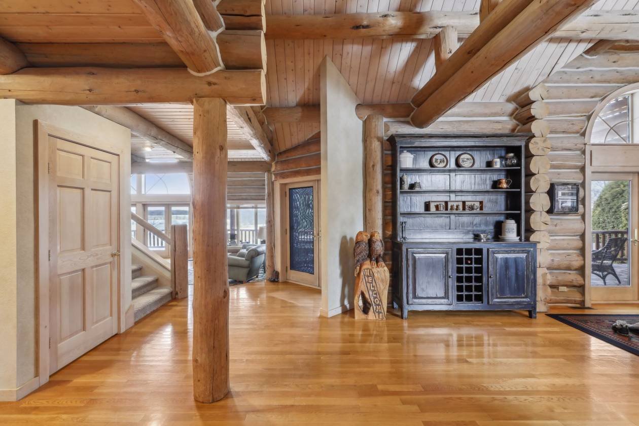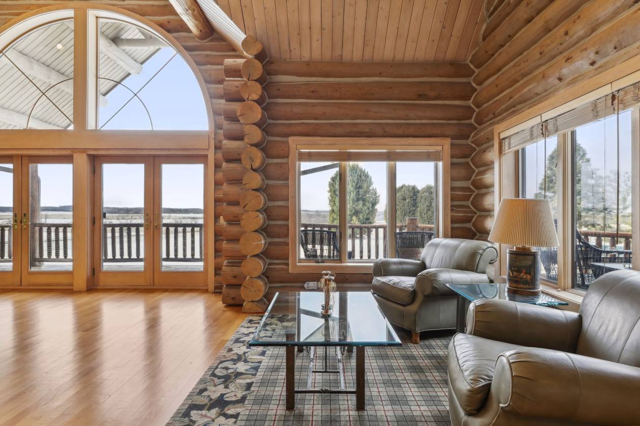 This 320-acre equestrian estate features a stunning 6,800+ square foot log home, built in 1992, with 5 bedrooms and 6 bathrooms. The residence includes a spacious executive kitchen, a great room with a stone fireplace, and a sunroom. Beautiful decking overlooks an in-ground pool and scenic pastures. The fully finished walk-out basement offers extra living space, while a detached heated 5-stall garage provides ample storage. The property boasts a state-of-the-art Morton barn, spanning over 27,000 square feet, equipped with 18 box stalls, three tack rooms, hay storage, wash stalls, grooming stalls, and an apartment for guests. It also includes an 80 x 180 heated arena, a 47 x 48 round pen, and a 150 x 300 outdoor arena for equestrian training. Additionally, the barn features air-conditioned offices, conference rooms, and break rooms. An additional 13,400+ square foot outbuilding with partial heating offers 5 heated box stalls, a workshop, a game room, and an apartment. This property is ideal for equestrian professionals or enthusiasts and includes a second home currently rented out for additional income.