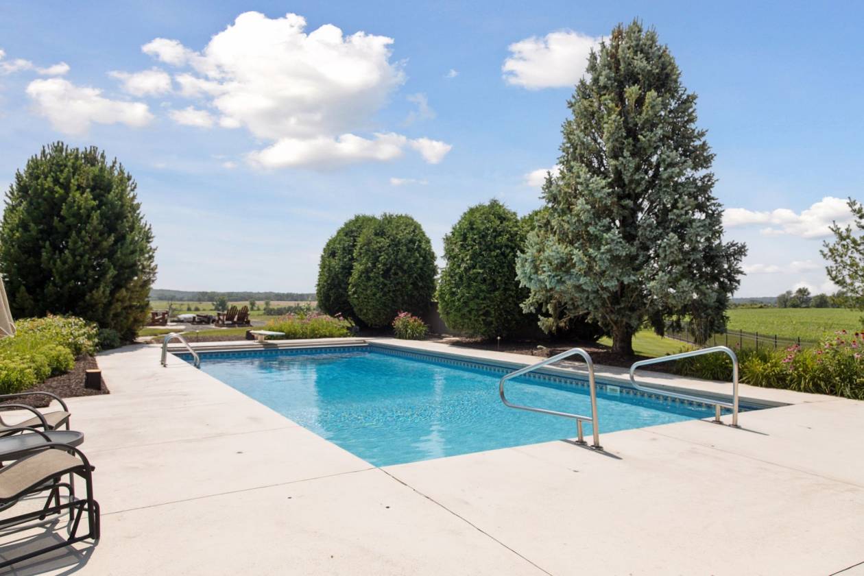 - Enjoy the tranquility of the perfect main level sunroom, complete with newer skylights and overlooking the heated in-ground pool and hot tub, where you can unwind while taking in the picturesque vistas of the sprawling pastures and rolling hills.