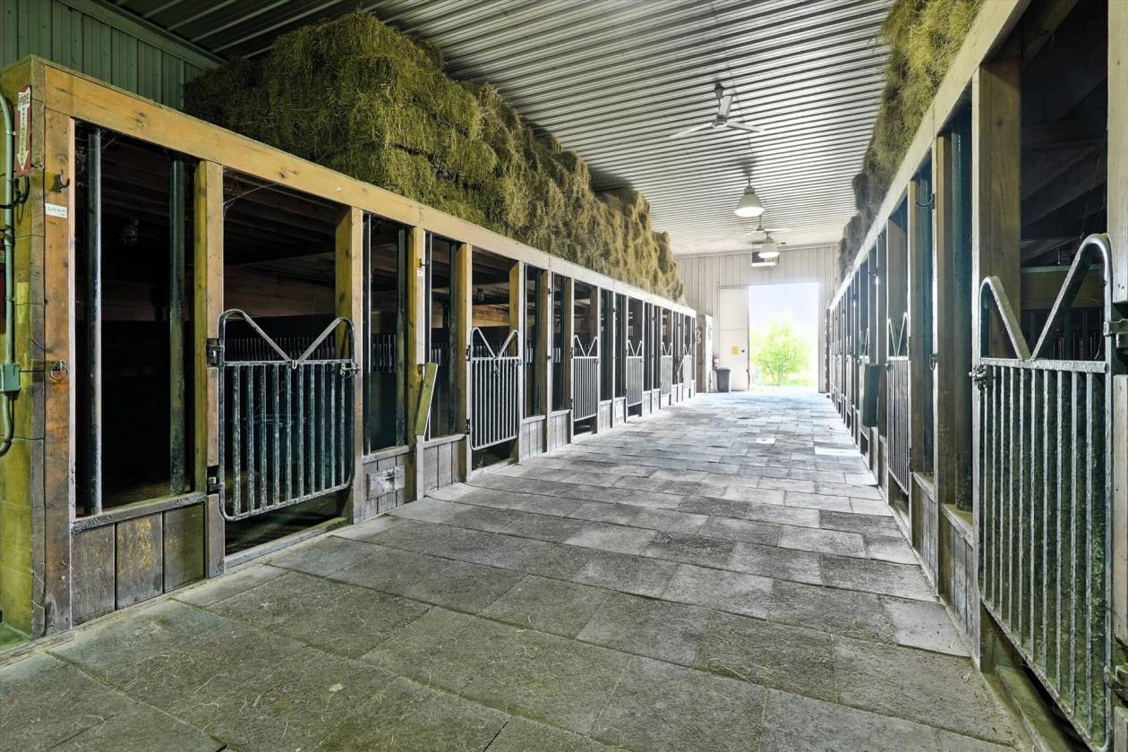 - Well-equipped horse barn featuring 5 spacious stalls, a dedicated feed room, and a tack room for organized storage and convenience. The barn is supported by its own dedicated well for reliable water supply and has a new shingled roof for long-term durability. A farrier shop area adds professional functionality, making this barn ideal for daily care, training, or small-scale operations. Thoughtfully designed and recently updated, it’s ready to meet the needs of both horses and owners.