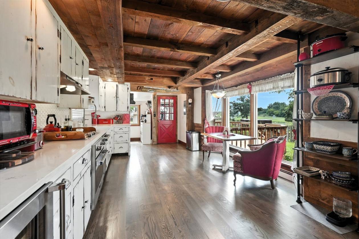 - Large Windows & Skylights — Expansive windows flood the living spaces with natural light and frame views of rural surroundings. Skylights in the kitchen and primary suite enhance the sense of openness and bring sunlight high overhead.