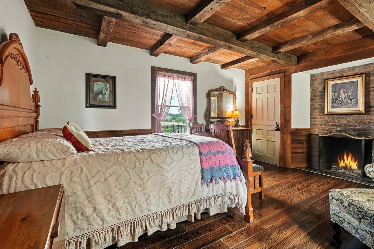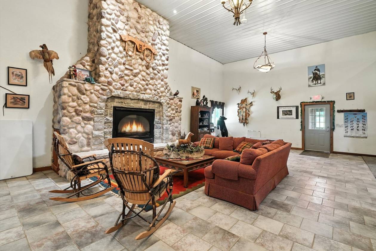 - The amenities are unmatched, featuring a spacious lounge with a grand gas fireplace, a large kitchen with a seating area, and even a hot tub for post-ride relaxation. The facility includes sixteen horse stalls plus one foaling stall, each outfitted with automatic waterers for convenience and care. Riders will appreciate the expansive tack storage and the large horse shower area with hot and cold water.