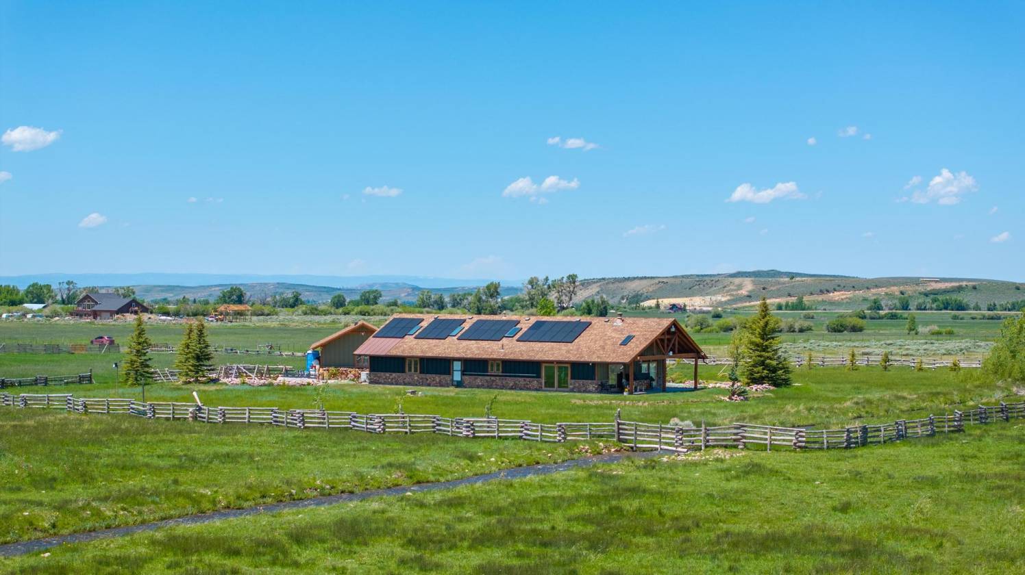 A rare opportunity awaits at the gateway to the Uinta Mountains-a luxury equestrian estate thoughtfully designed and meticulouslybuilt by its owner over the course of a decade. Just 15 minutes from town and just over one hour from both Park City and Salt LakeCity. This exclusive property offers all the benefits of proximity to world-class skiing, dining, and international travel, while enjoyingWyoming's low cost of living, no state income tax, and abundant open space. Every inch of this 2,277 sq ft custom residencereflects a deep commitment to quality, comfort, and sustainability, offering an exceptional blend of refined living and ranch-readyfunctionality. Set on 35.4 fully fenced acres of pristine pastureland, this property is perfectly suited for horses and livestock, withapproximately 18 acres in hay production yielding 35–40 large bales annually, 16 acres of grazing pasture, and 25 acres irrigatedunder historic pre-1890 water rights via The Goodman Land and Cattle Company Appropriation. The home rests on an elevatedslab-on-grade foundation with 8 inches of high-density foam insulation beneath, delivering superb thermal protection. Constructedwith 2x6 framing, the structure is insulated with expanding foam and blown-in fiberglass (R-24), with R-36 insulation in the ceilingsand heavy-gauge steel garage doors rated at R-18. Two attached garage bays are fully heated, plumbed, and wired, offering anexcellent opportunity for conversion into additional bedrooms, guest quarters, or expanded living space. A separate 768 sq ftdetached garage provides ample room for equipment, workshop needs, or additional storage. Elegant Pella triple-pane windowswith wood interiors and aluminum-clad exteriors pair with motorized Hunter Douglas Triple Cellular Shades (R-8), controllable viaWi-Fi app, offering unmatched energy efficiency and acoustic privacy. Heating is provided by a Weil-McLain propane boiler fuelingradiant in-floor heating throughout, complemented by a striking Tulikivi soapstone fireplace for radiant warmth and ambiance. Thishome is also prepared for full off-grid living, featuring a 90 kW solar system (30 LG panels with a 7.9 kW SolarEdge inverter), threeTesla Powerwalls, and a 22.5 kW Generac whole-home generator, while remaining grid-connected to Rocky Mountain Power.Water is supplied by a private 330-foot well with dual 50-gallon pressure tanks and distributed through a smart manifold system forindividual control of each line, including exterior hose bibs. The roof boasts 50-year architectural shingles over ¾-inch plywooddecking for added durability and structural integrity. The chef's kitchen is outfitted with premium GE Café appliances, solid cherrycabinetry, and granite countertops. Whether you're seeking a private mountain retreat, a full-scale horse property, or a sustainablelegacy estate, this one-of-a-kind residence delivers Wyoming living at its finest-luxurious, self-sufficient, and ready to serve generations to come.